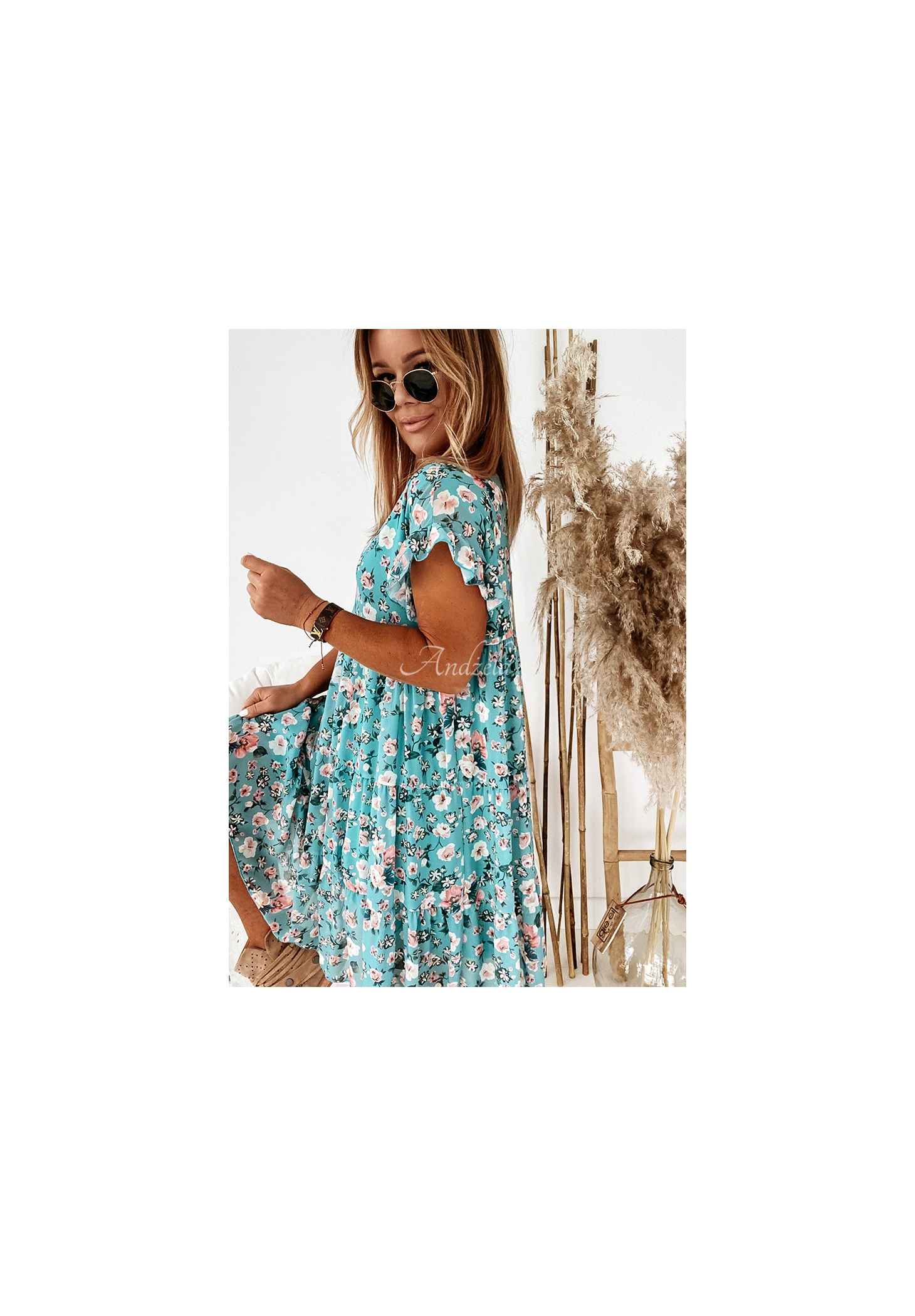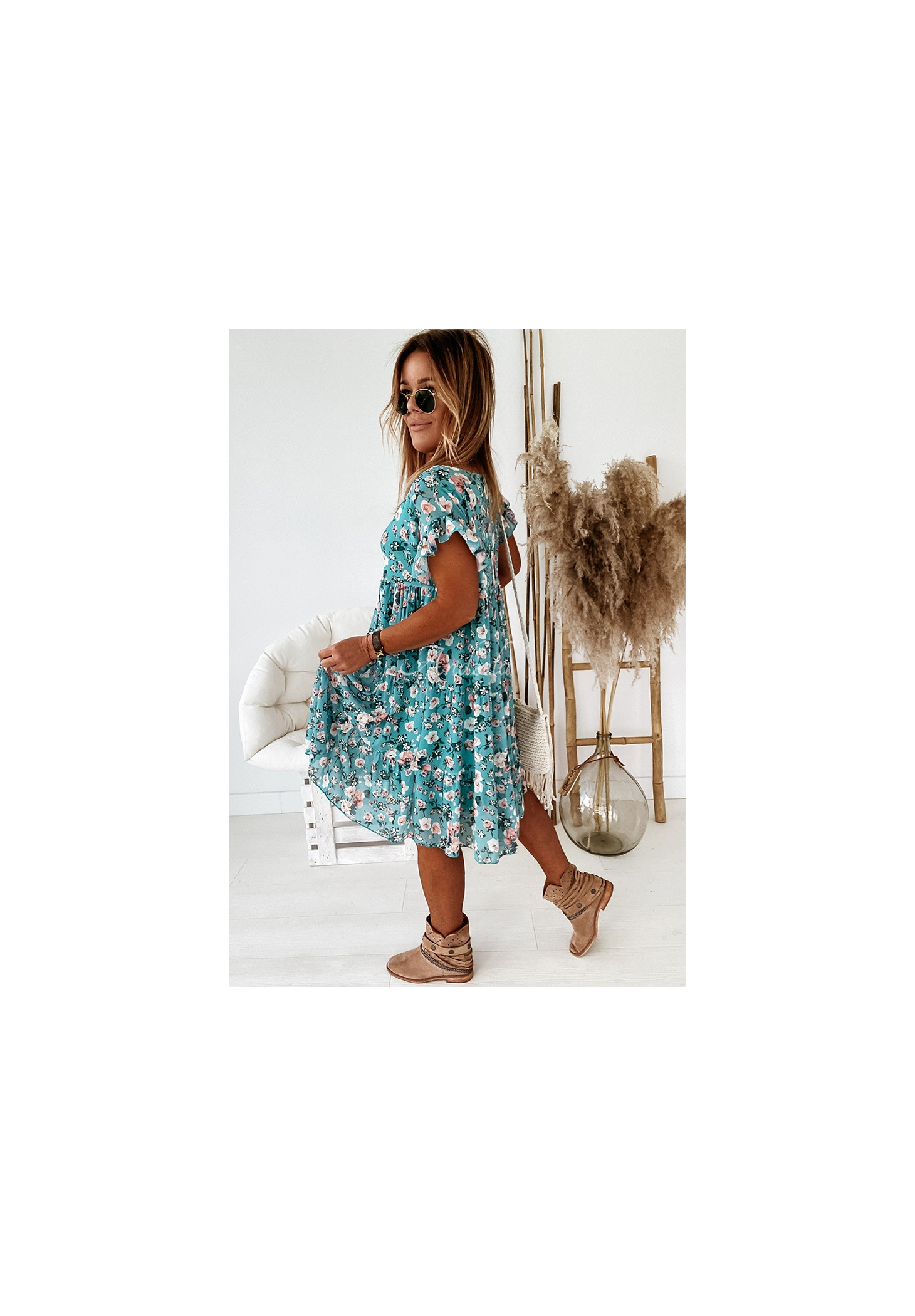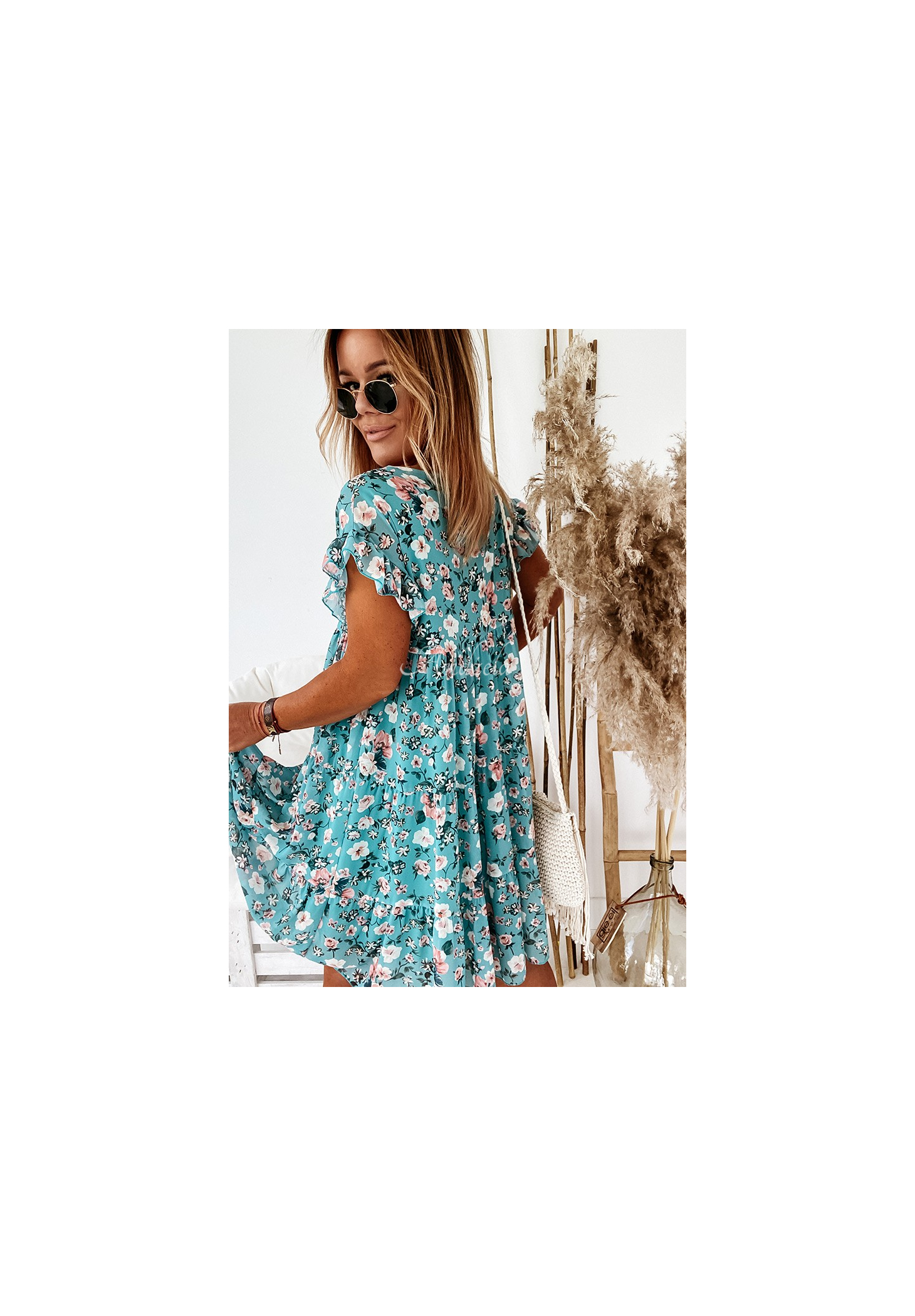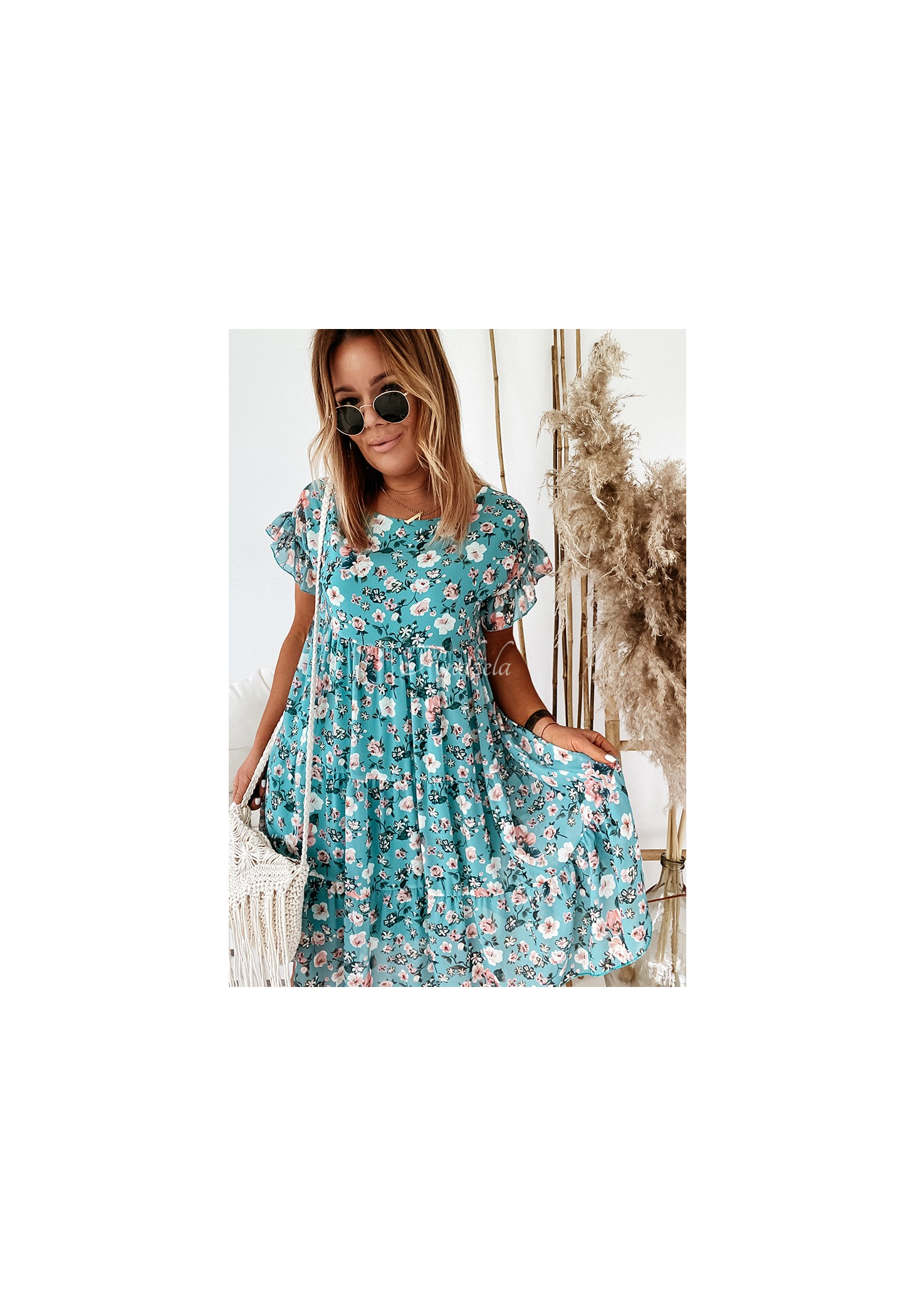 Blumiges Kleid aus luftigem Material ist eine tolle Wahl für frühlings- und sommerliche Outfits. Das Modell zeichnet sich durch Ärmel mit zarter Rüsche und horizontalen Nähten aus. Der leicht ausgestellte Saum verleiht dem Ganzen einen mädchenhaften Look. Perfekt zum Stylen mit Stiefeletten und Sandalen. Erhältlich in mehreren Farben.