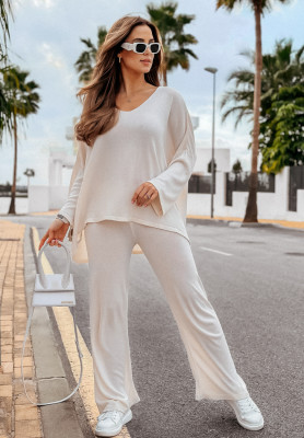 Leichter Oversize-Pullover mit Ausschnitt Back To Basics Vanillefarben