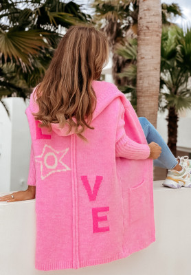 Lange Strickjacke mit Kapuze Starry Love Rosa
