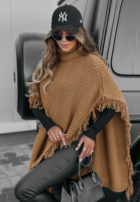 Poncho-Pullover mit Fransen und Rollkragen Welcome Autumn Camel