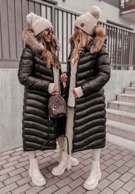 Lange Daunenjacke mit Pelz Winter Time Schwarz