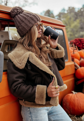 Kurze Wildlederjacke mit Schaffellfutter Maple Park Schokoladenbraun
