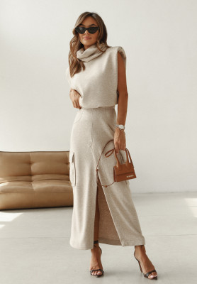 Set aus gestrickter Oberteil und Rock Fall Into Place Beige