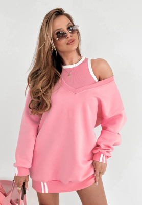 Gestreiftes Set aus Kleid und Sweatshirt Unlike You Rosa