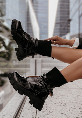 Lackierte Stiefeletten mit Riemen Ruth Schwarz