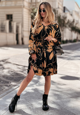 Gemustertes Kleid mit Rüschen Rayla Schwarz