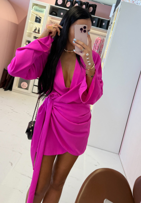 Kleid mit Puffärmeln und Gürtel Crazy About You Rosa