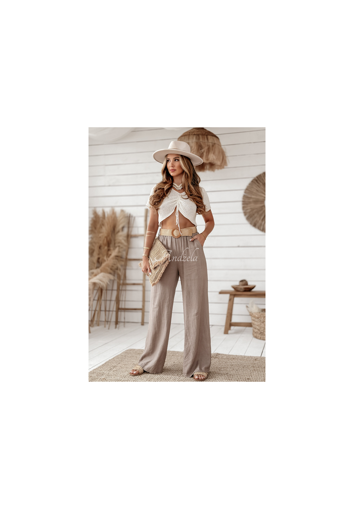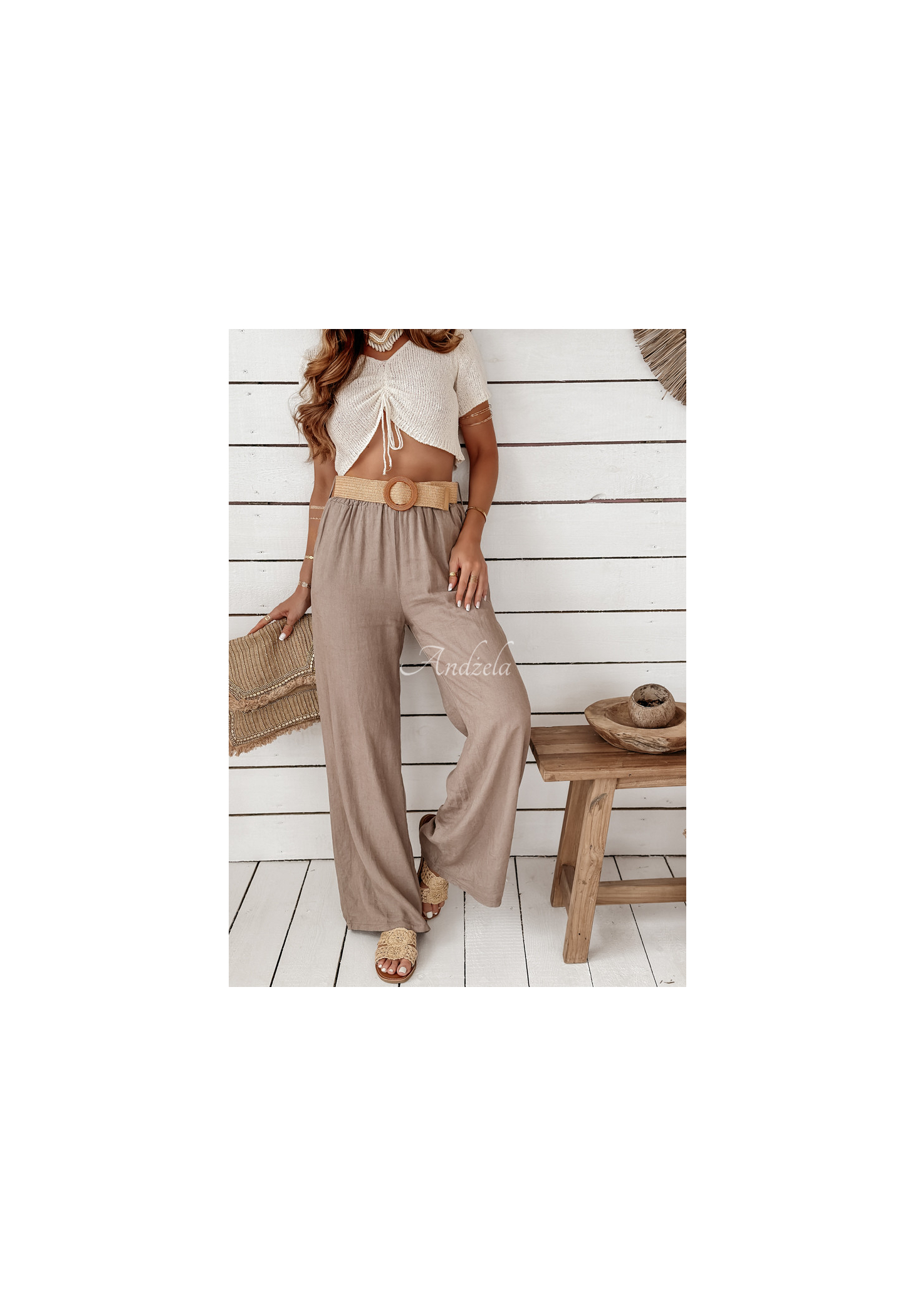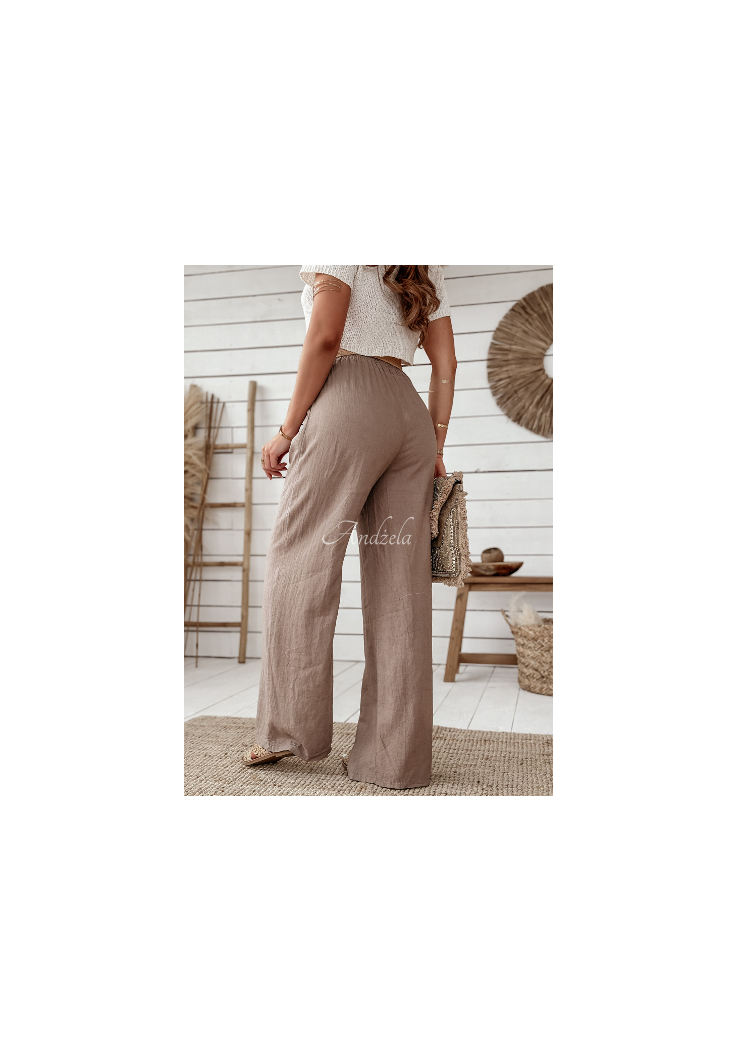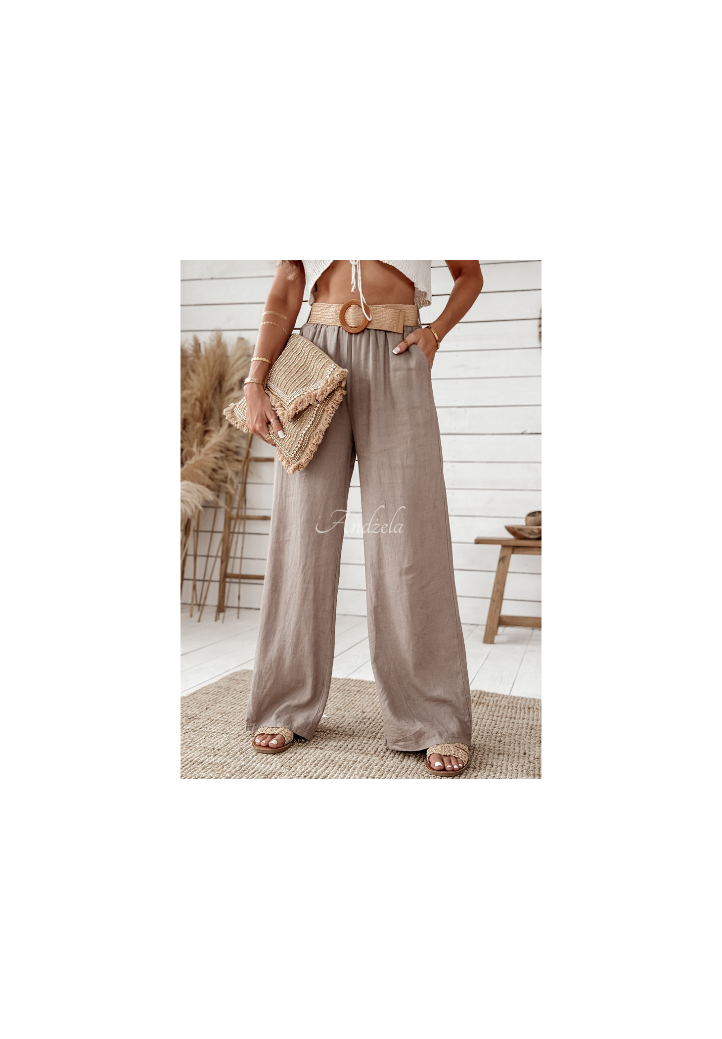 Leinenhosen mit weitem Bein sind eine gute Wahl für den täglichen Gebrauch in der Sommersaison. Das Modell mit weitem Bein verfügt über zwei funktionelle Taschen auf der Vorderseite. In der Taille ist ein Gummiband eingenäht, wodurch sie sich perfekt an die Figur anpasst. Ein zusätzlicher Vorteil ist der im Set enthaltene geflochtene Gürtel, der dem gesamten Look Charakter verleiht. Das Produkt ist in mehreren Farben erhältlich!