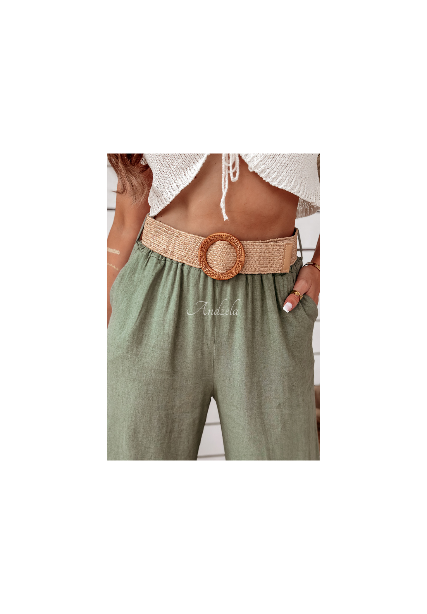 Leinenhosen mit weitem Bein sind eine gute Wahl für den täglichen Gebrauch in der Sommersaison. Das Modell mit weitem Bein verfügt über zwei funktionelle Taschen auf der Vorderseite. In der Taille ist ein Gummiband eingenäht, wodurch sie sich perfekt an die Figur anpasst. Ein zusätzlicher Vorteil ist der im Set enthaltene geflochtene Gürtel, der dem gesamten Look Charakter verleiht. Das Produkt ist in mehreren Farben erhältlich!