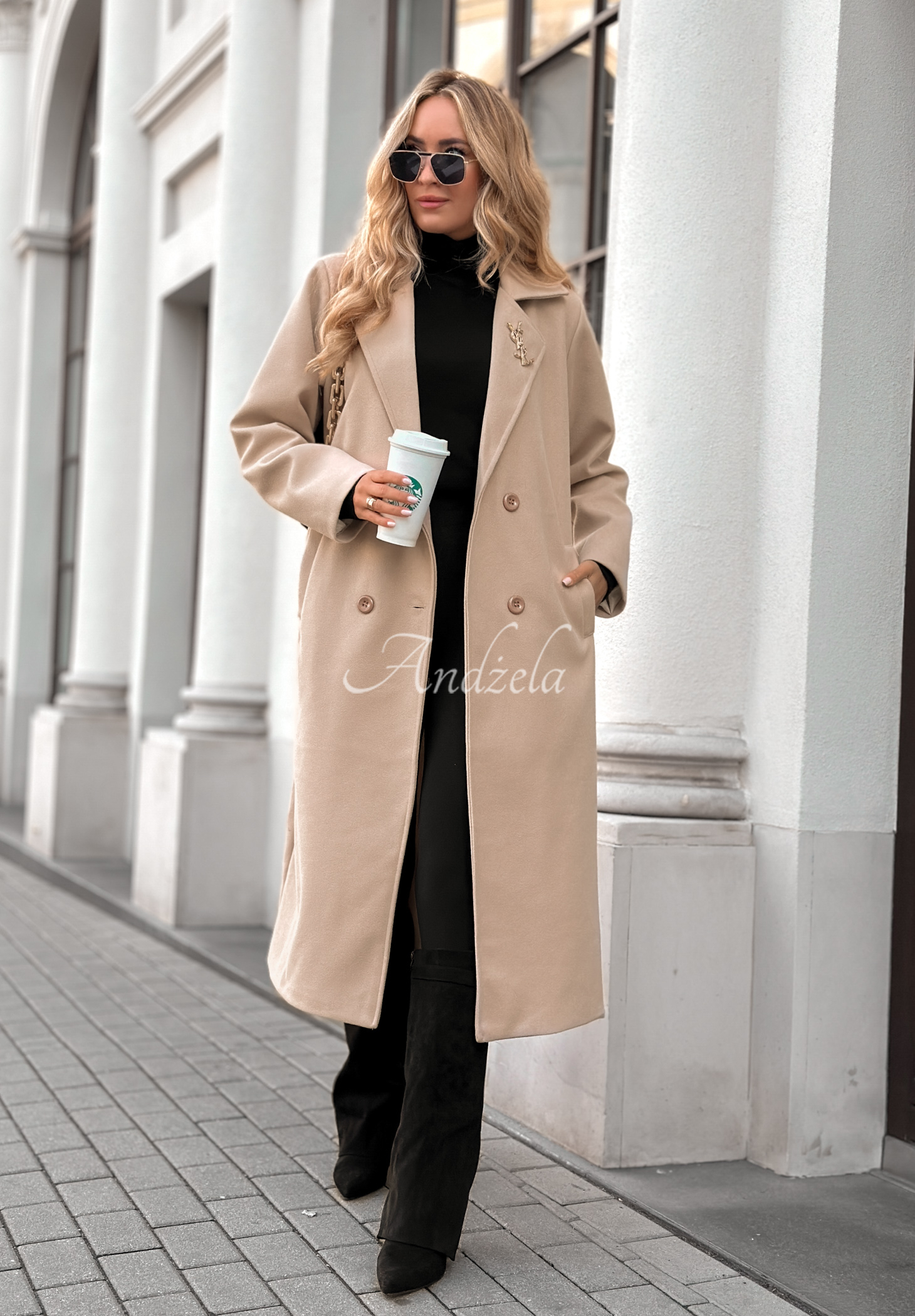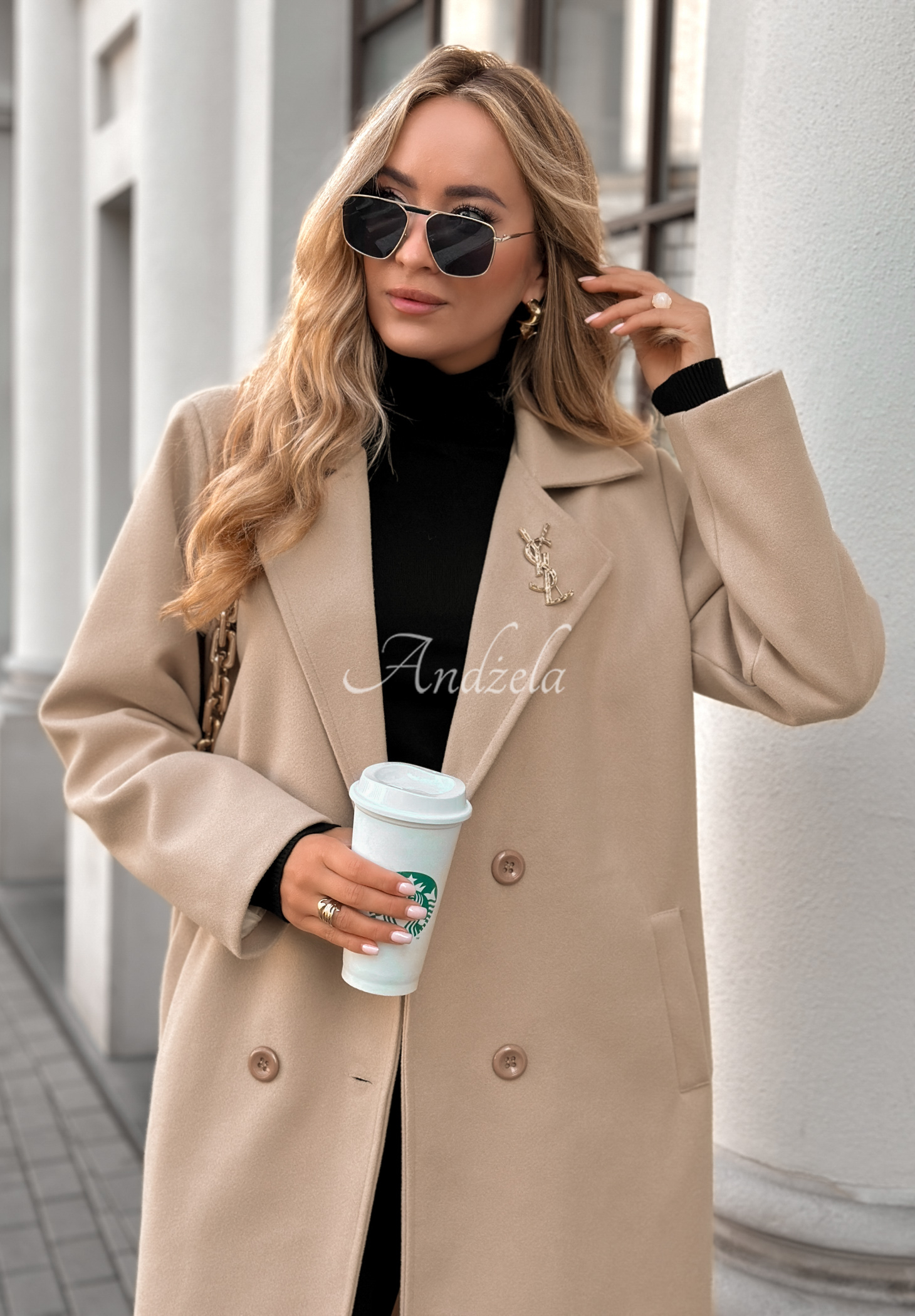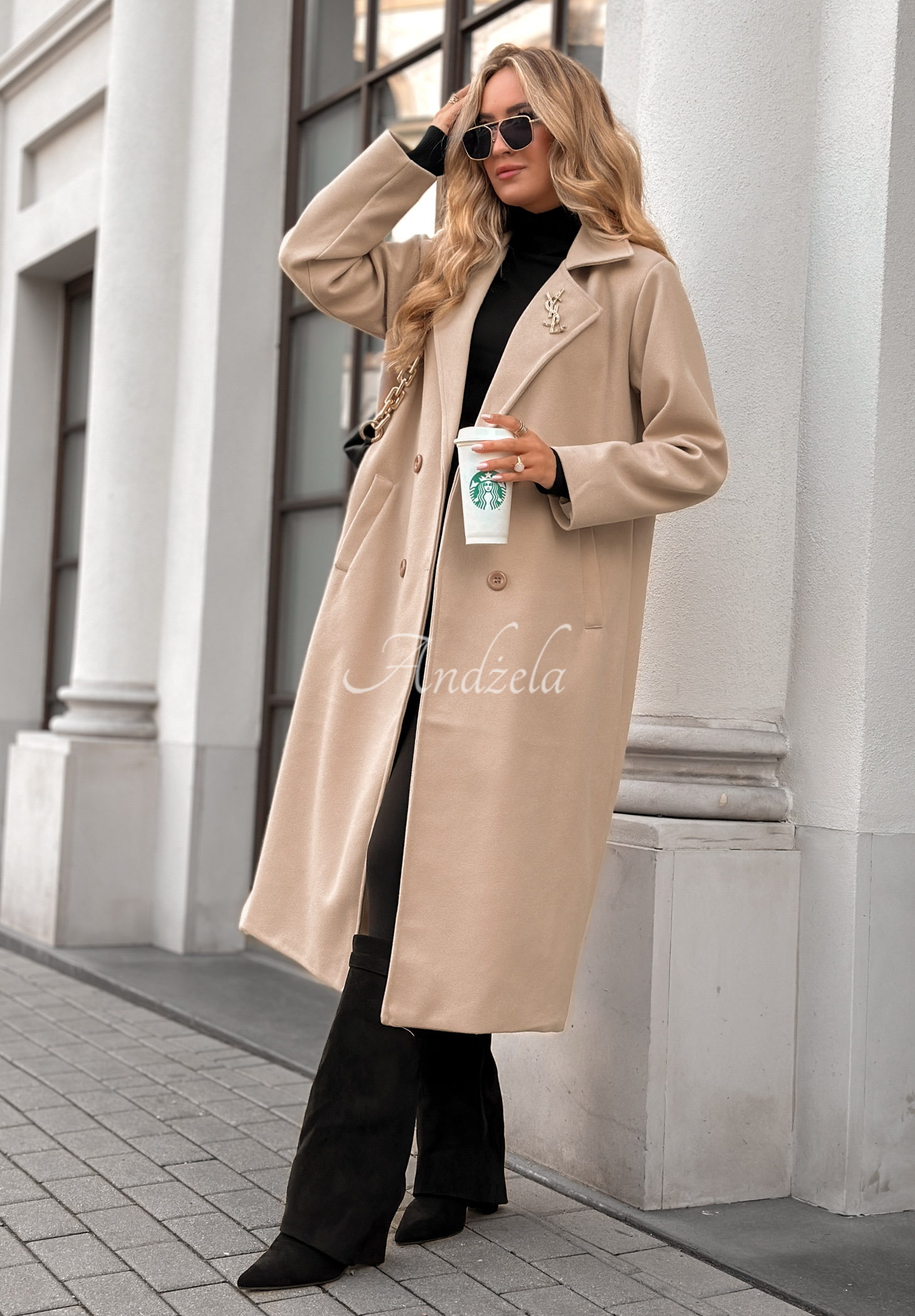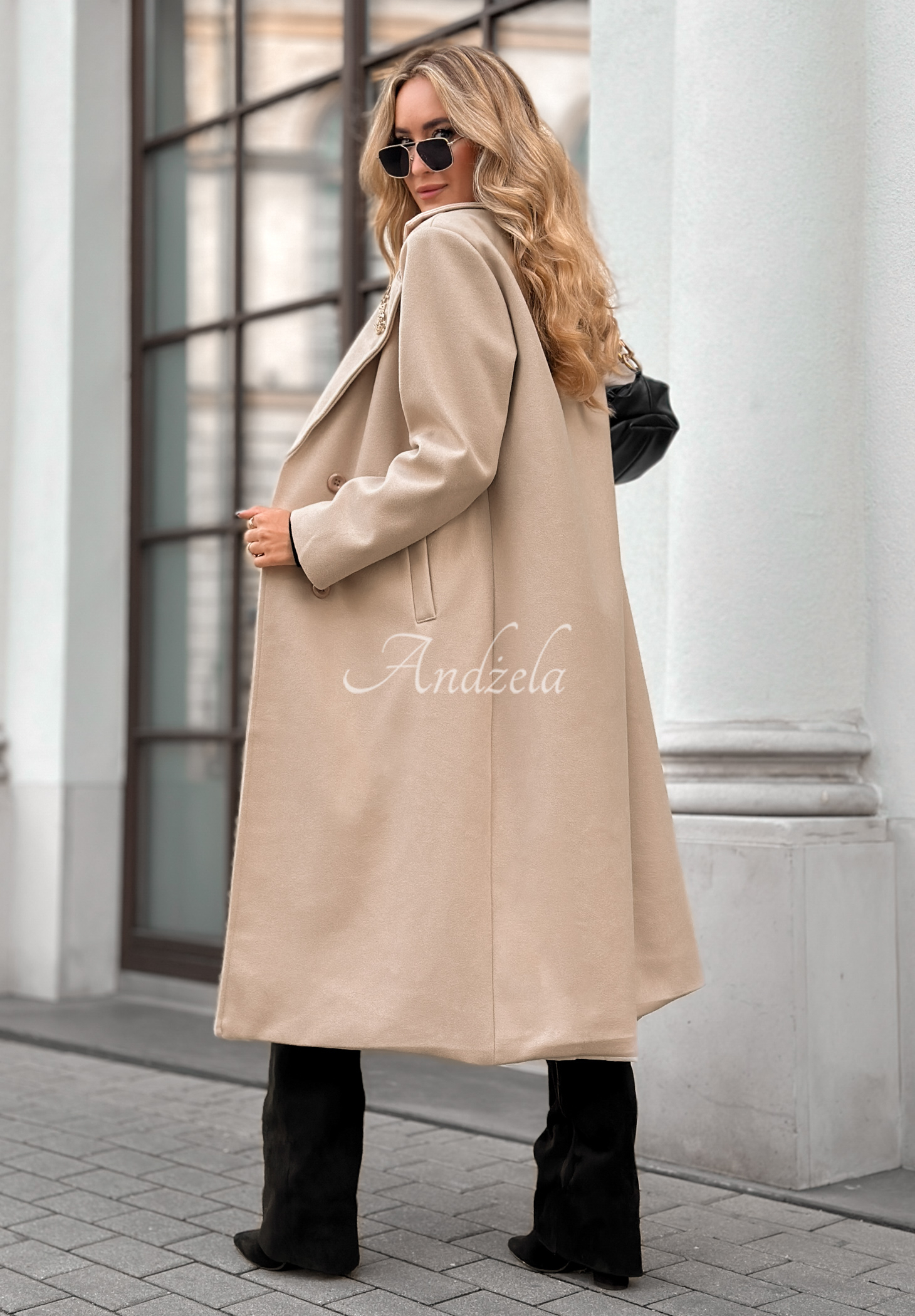 Dieser übergroße, zweireihige Mantel verfügt über einen Button-Down-Kragen und Hüfttaschen.