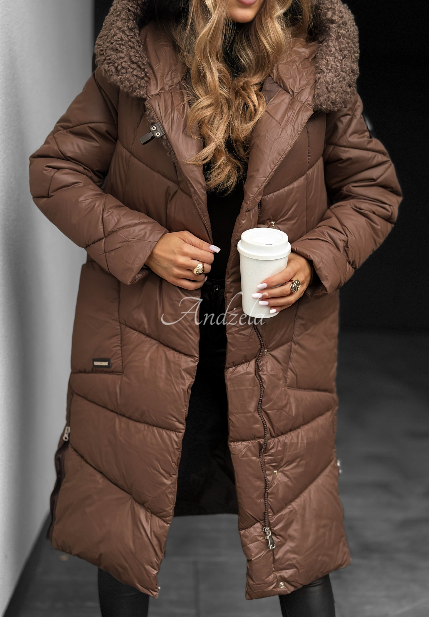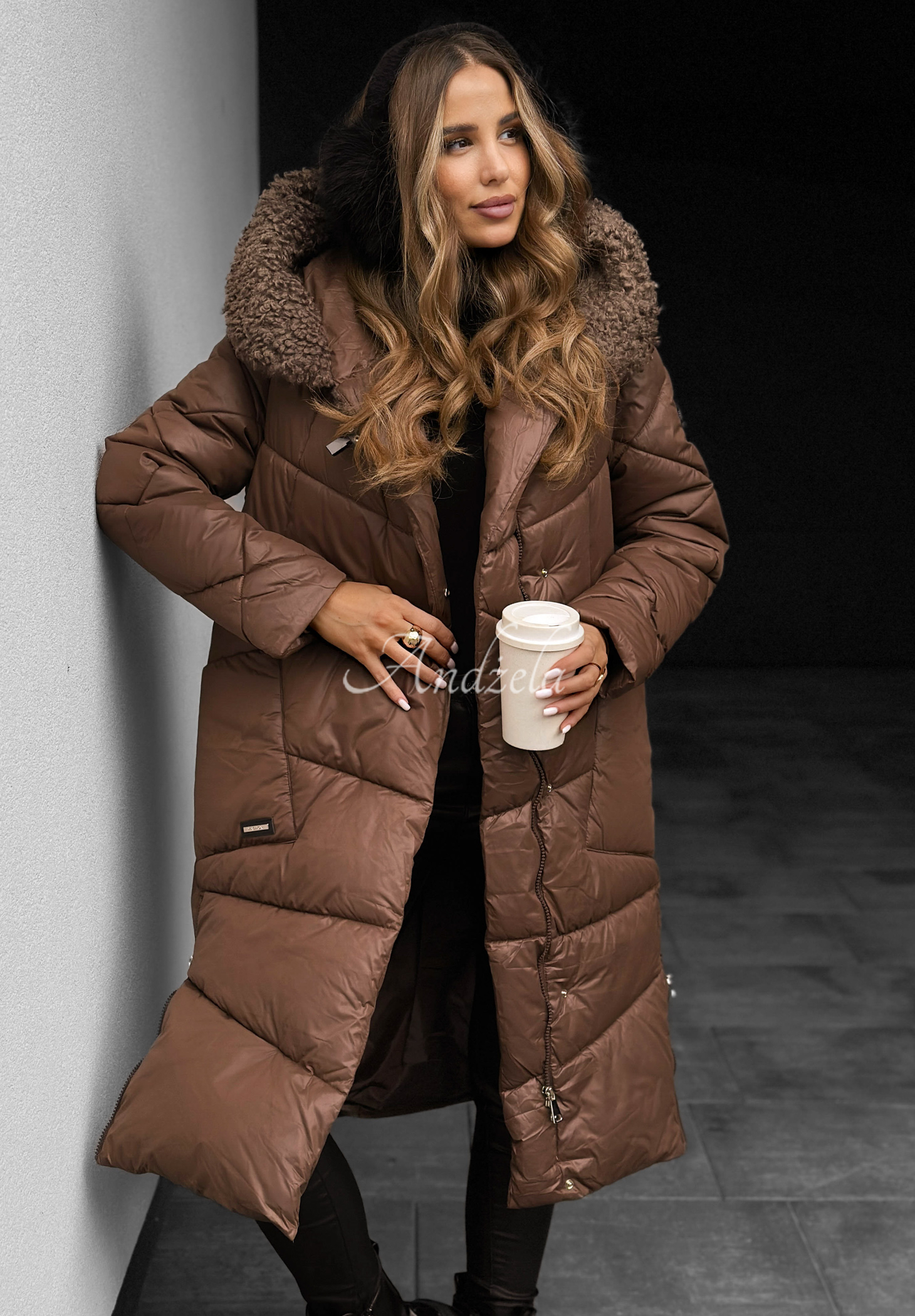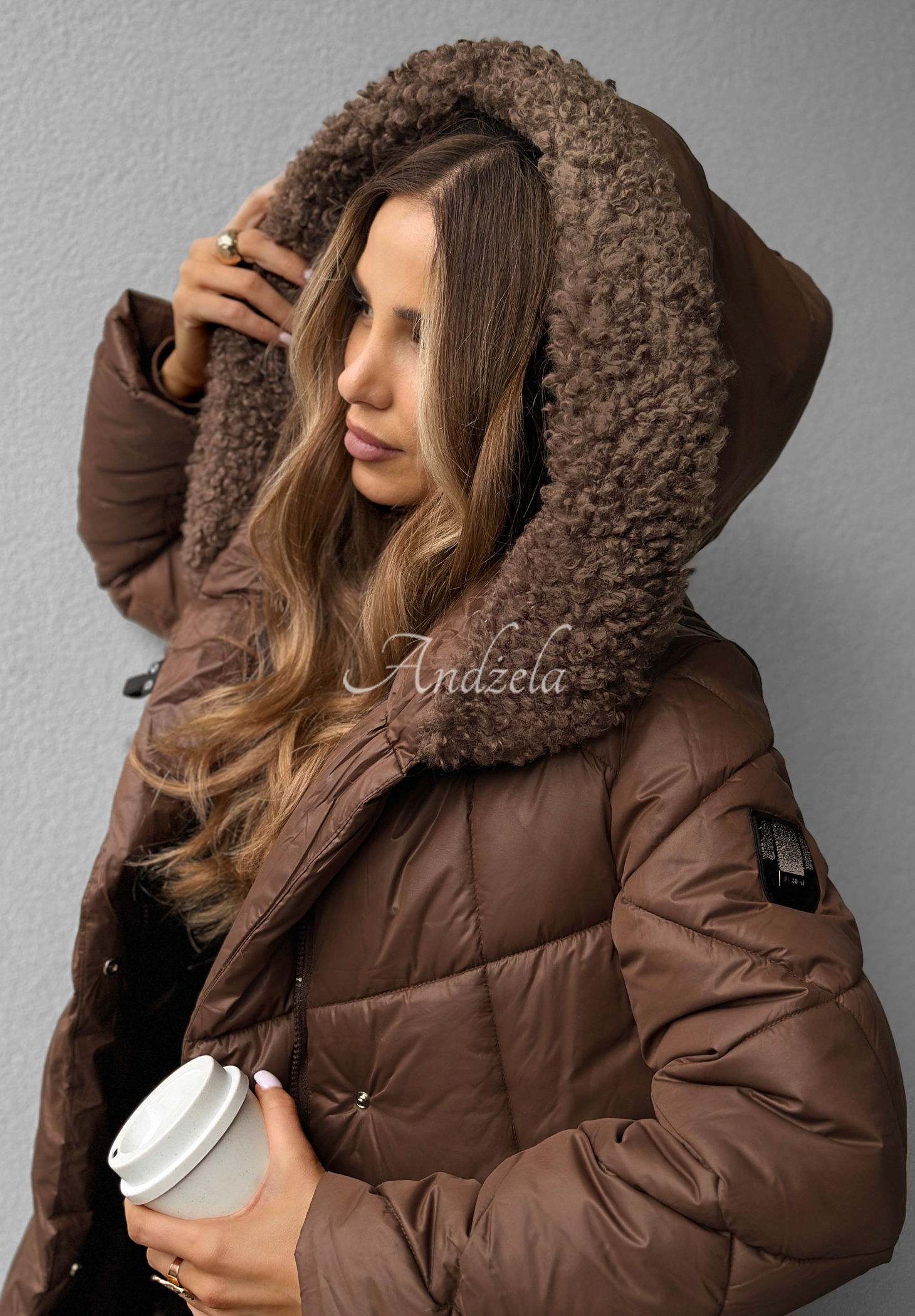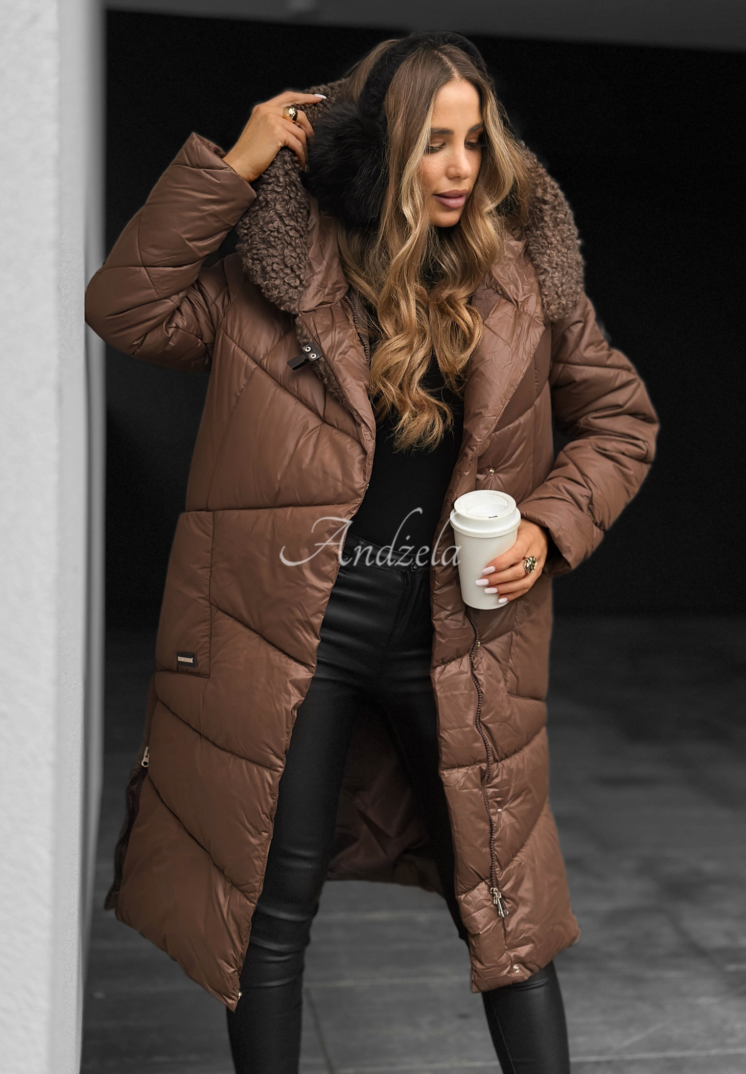 Steppjacke mit Schaffell October Leaves Schokoladenbraun