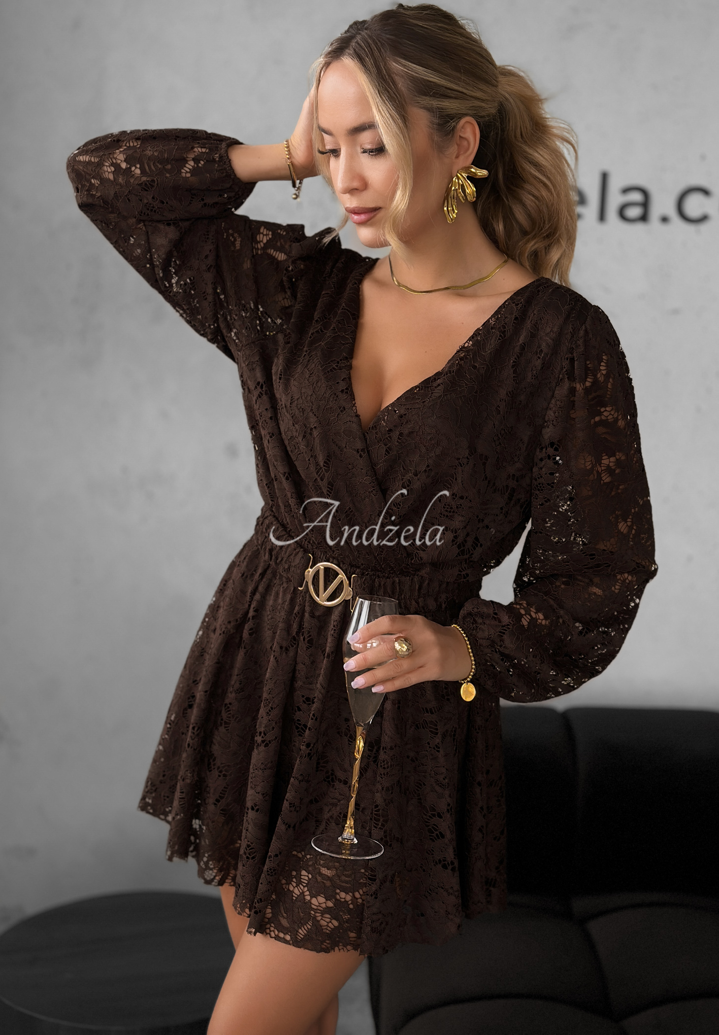 Der Spitzen-Overall ist ein Vorschlag, der sich sehr feminin zu verschiedenen Anlässen präsentieren wird. Das Modell mit kurzem Schnitt und V-Ausschnitt hat transparente Ärmel mit Rippbündchen. Er hat einen elastischen Bund für eine perfekte Passform und um die Silhouette zu betonen. Im Set enthalten ist ein Gürtel mit goldener Schnalle, der jedes Outfit perfekt ergänzt.