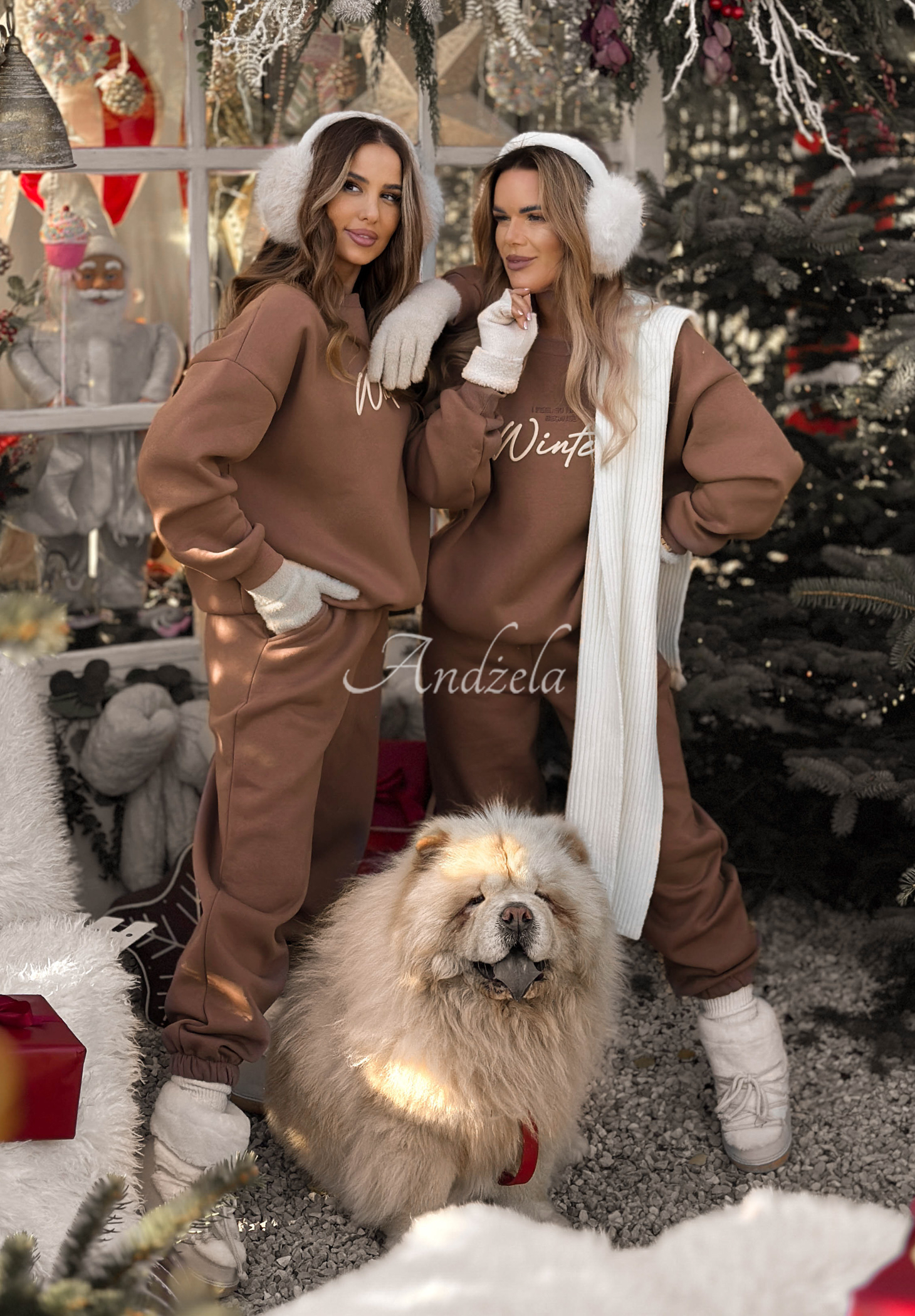 Trainingsnazug Sweatshirt und Hose So Happy Because Winter Schokoladenbraun