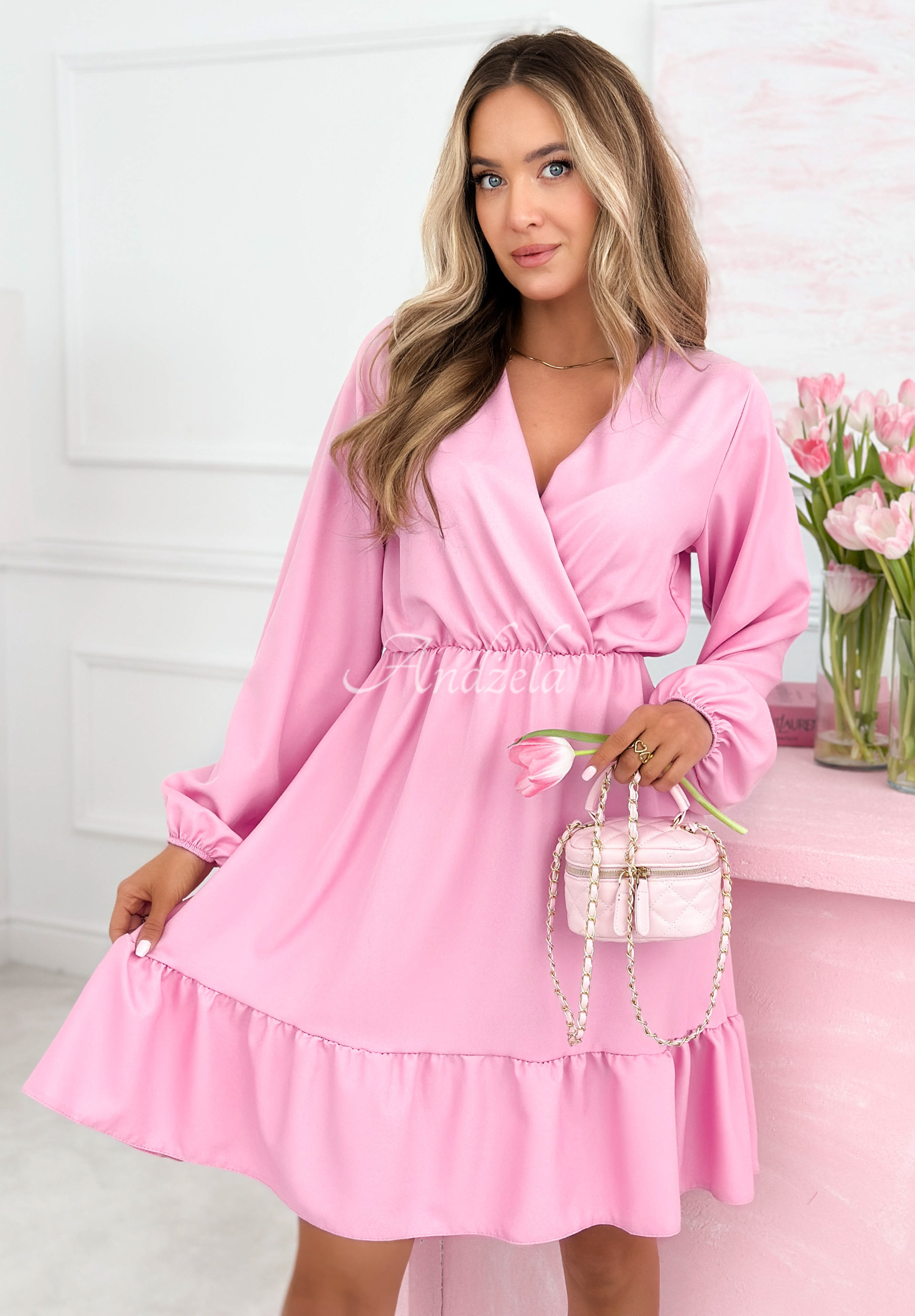 Wickelkleid mit Rüschen und Viskose Valentina Rosa