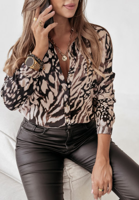Hemd im Animal Print mit Stehkragen Going Wild schwarz-beige