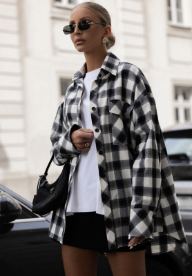 Langes kariertes oversized Hemd Kopenhaga Schwarz