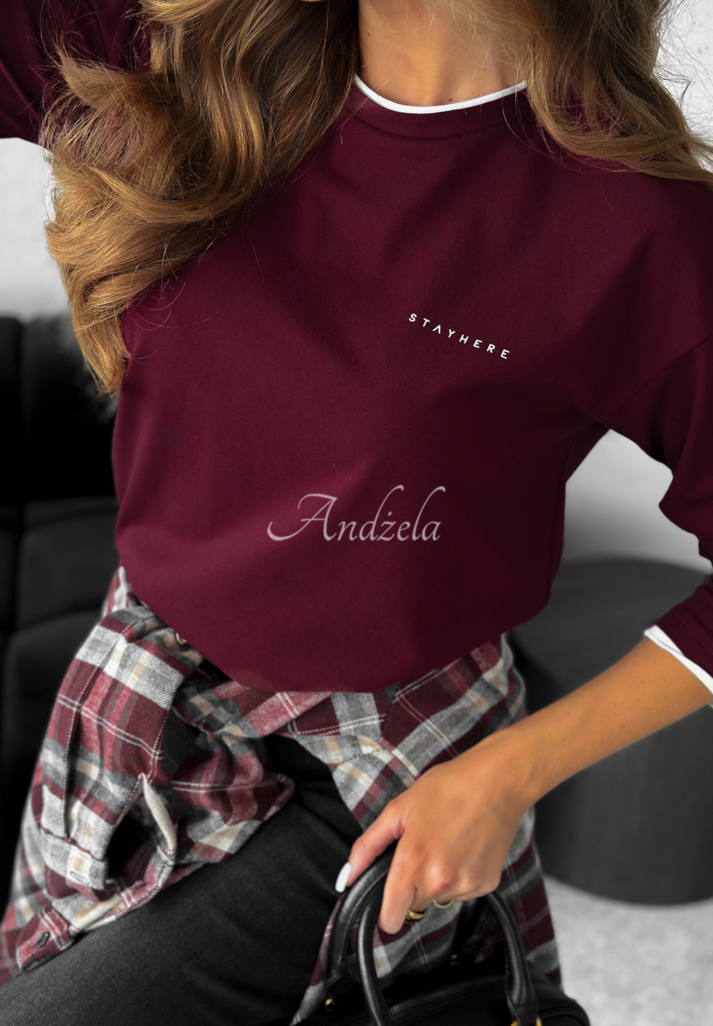 Langärmelige Baumwollbluse. Dieses klassische Design besticht durch einen minimalistischen Print auf der Vorderseite. Rundhalsausschnitt und Ärmel sind aus kontrastierendem Stoff gefertigt.