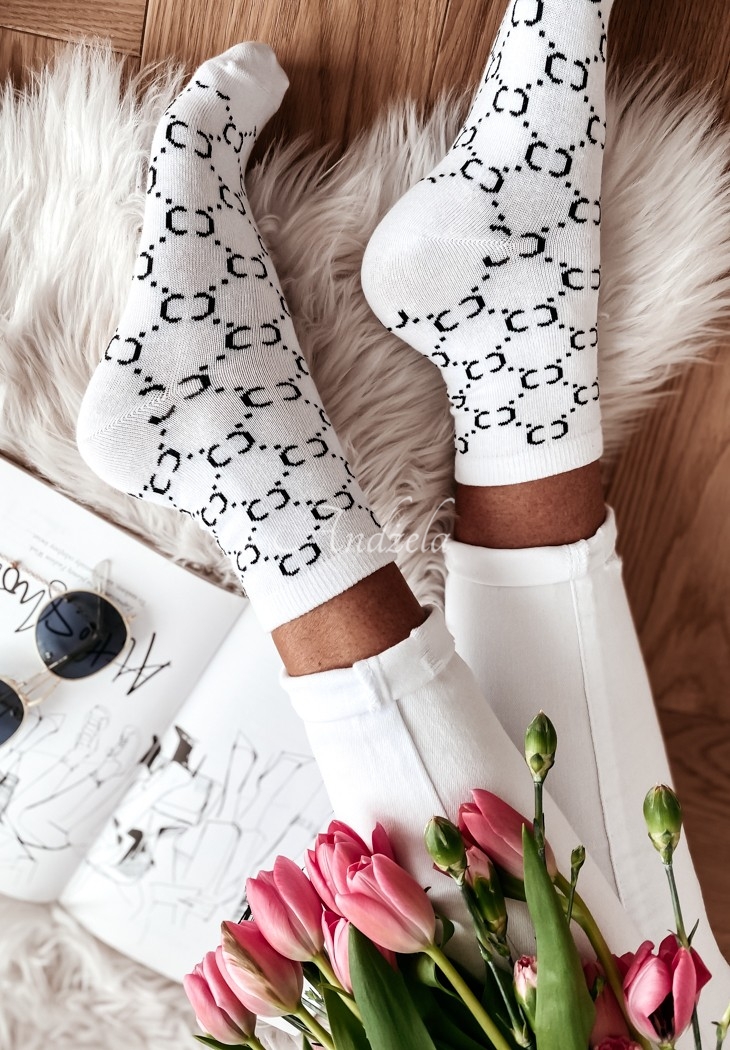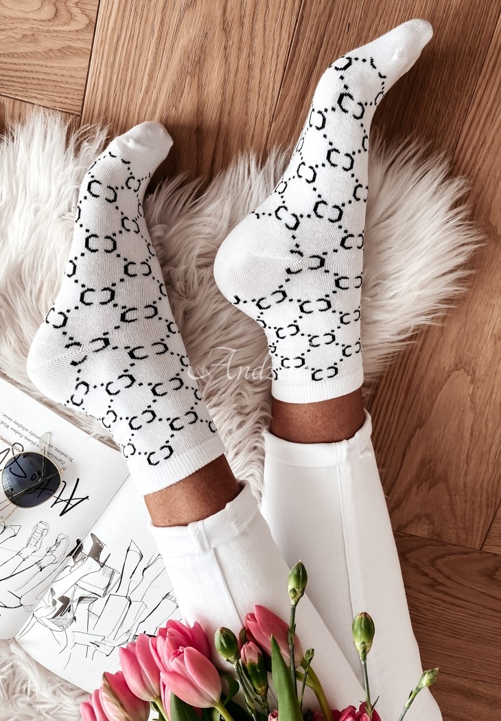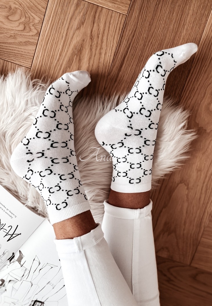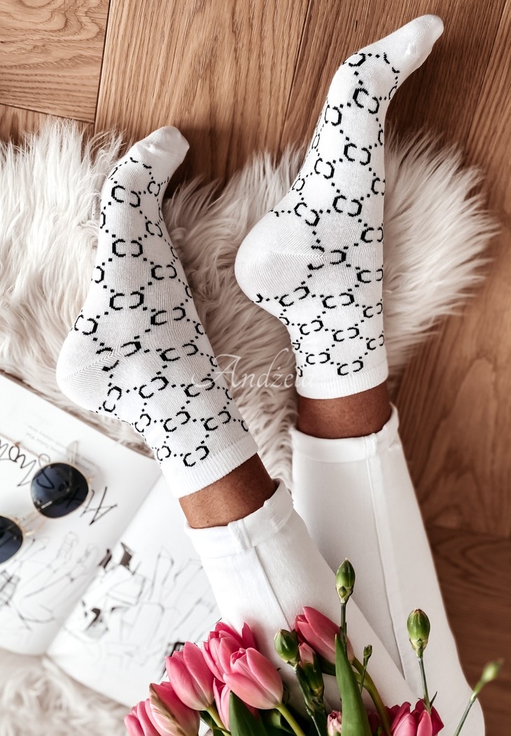 Printed socks will be a great addition to many stylings. The model is made of high-quality cotton, which will provide you with comfort and convenience while wearing. Elastic and non-pressure drawstring at the top, will prevent slipping off the leg and keep the sock in place.