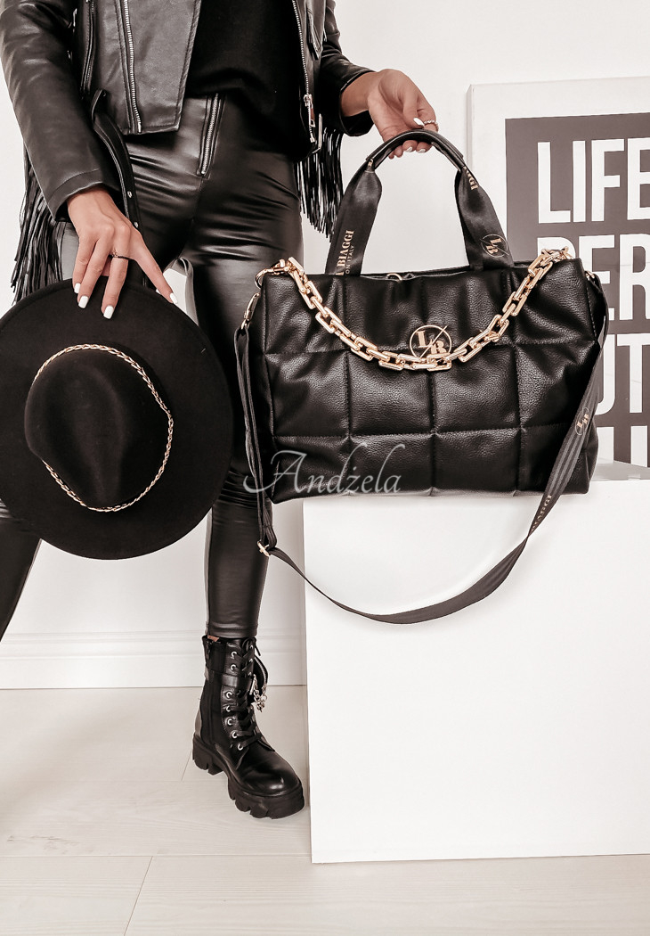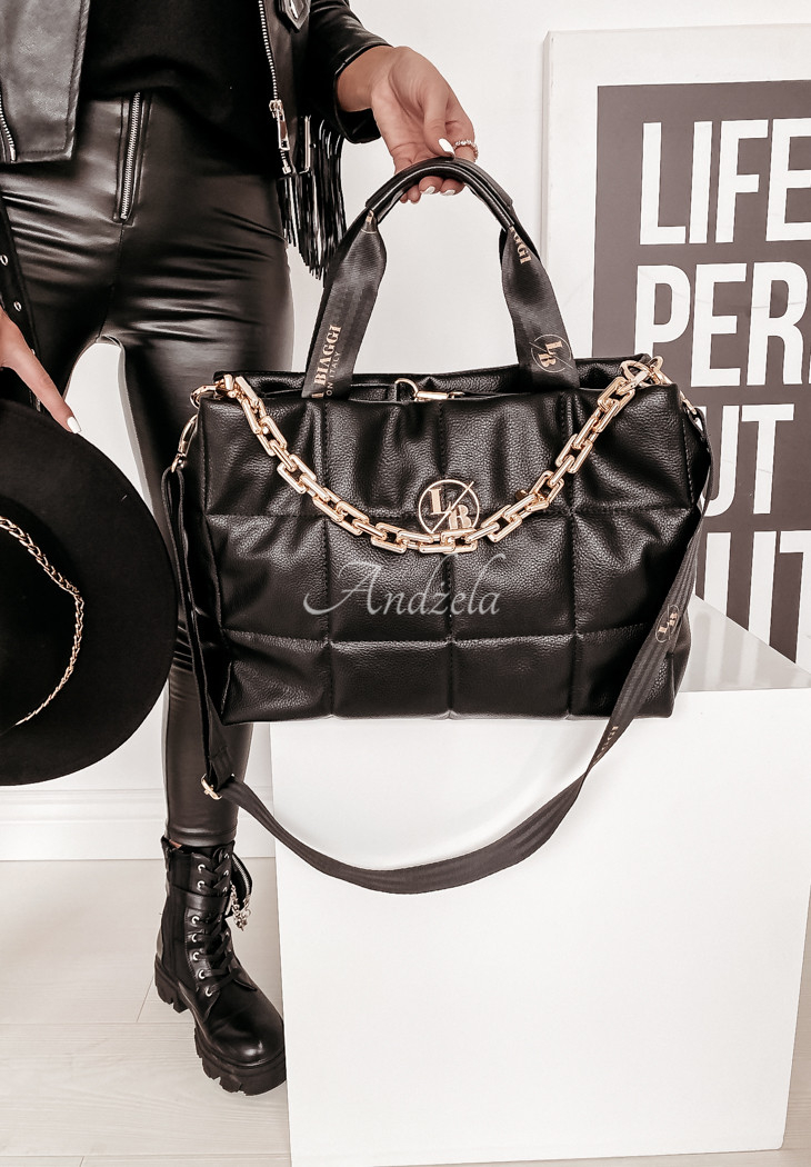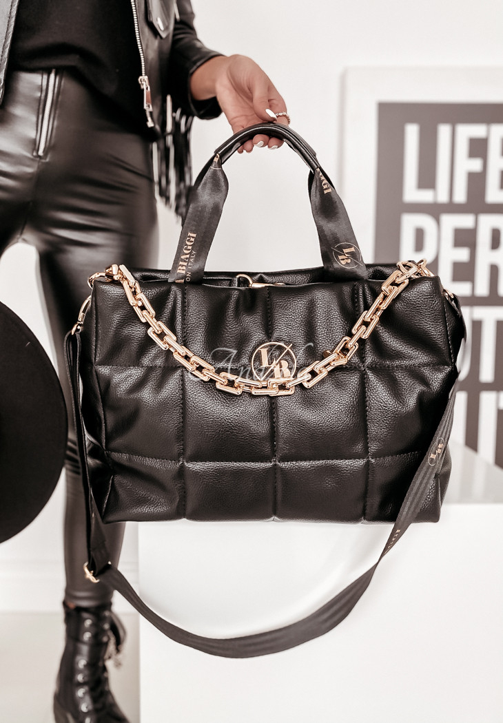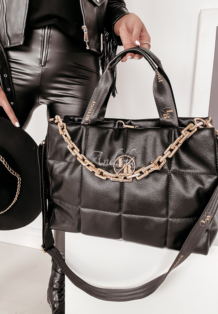 Elegant and very packable handbag made of quilted material, it will certainly be a great addition to many stylings. The model has a decorative gold chain, which gives it character. The bag has handles and an adjustable strap. Inside it has three pockets, one of which is zippered.