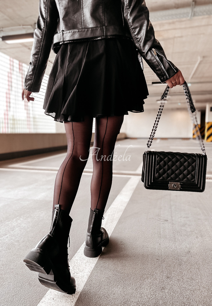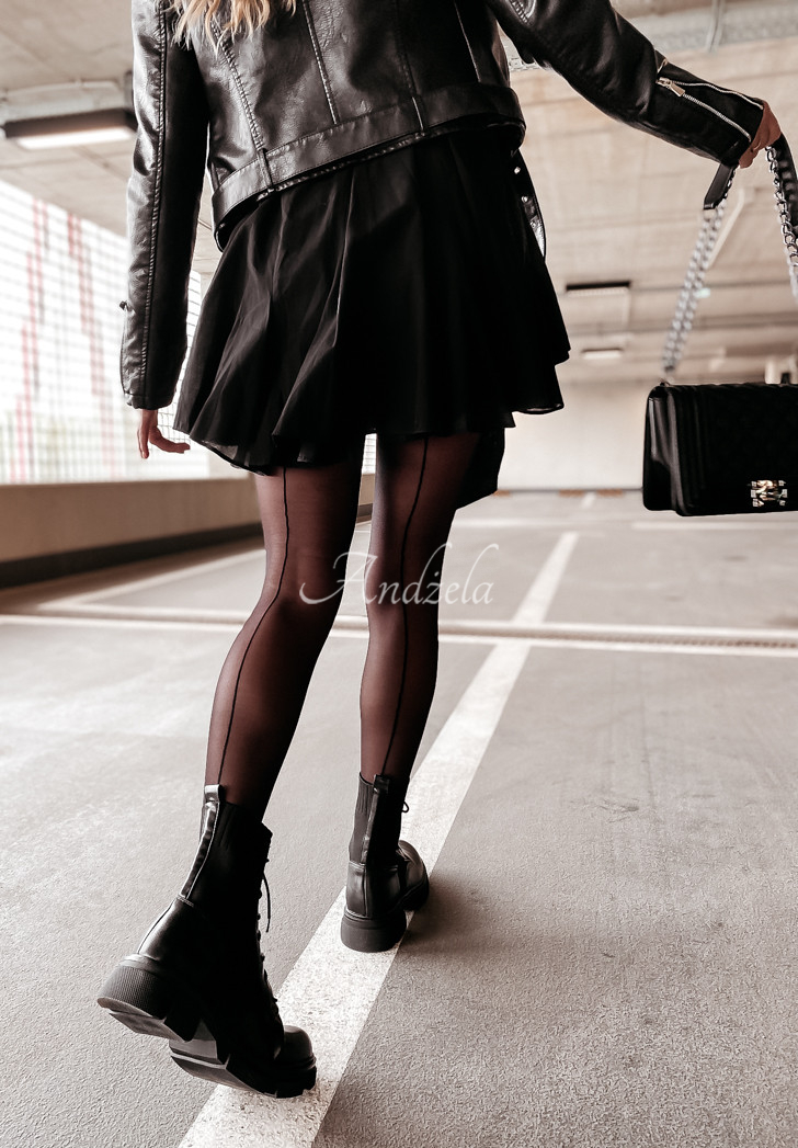 The tights with a unique seam at the back will definitely attract more than one attention, being the most distinctive element of any styling. Made of delicate material, which is very soft and velvety to the touch. They will perfectly compose with boots, as well as with stilettos.