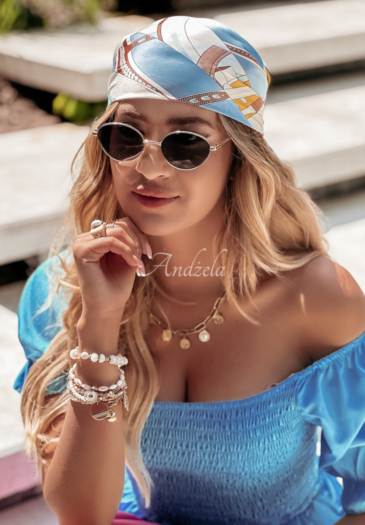 A scarf with beautiful patterns is a versatile accessory that can be worn in many ways. It will look phenomenal tied as a headband, on the hair in place of an elastic band or classically around the neck. It can also grace a handbag! In each edition will work great and will change many styling, giving it color and interesting character.
