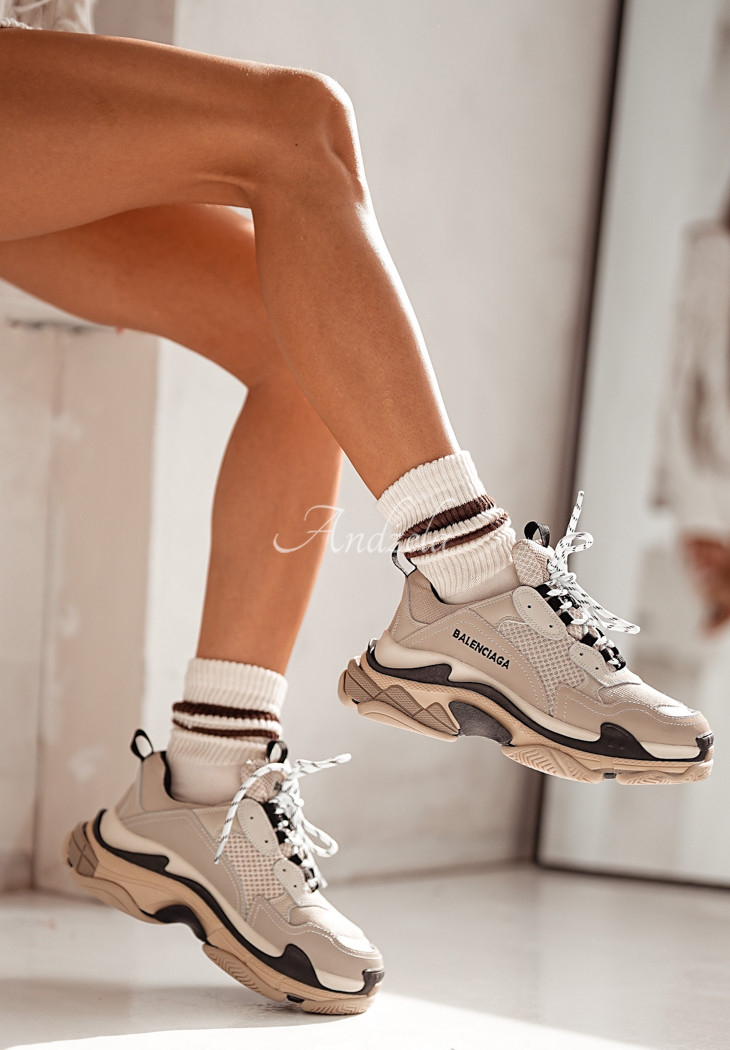 Long striped socks with ribbed material on the upper part are a great choice to complement many styles. The model has a flat seam that provides comfort and convenience when walking.
