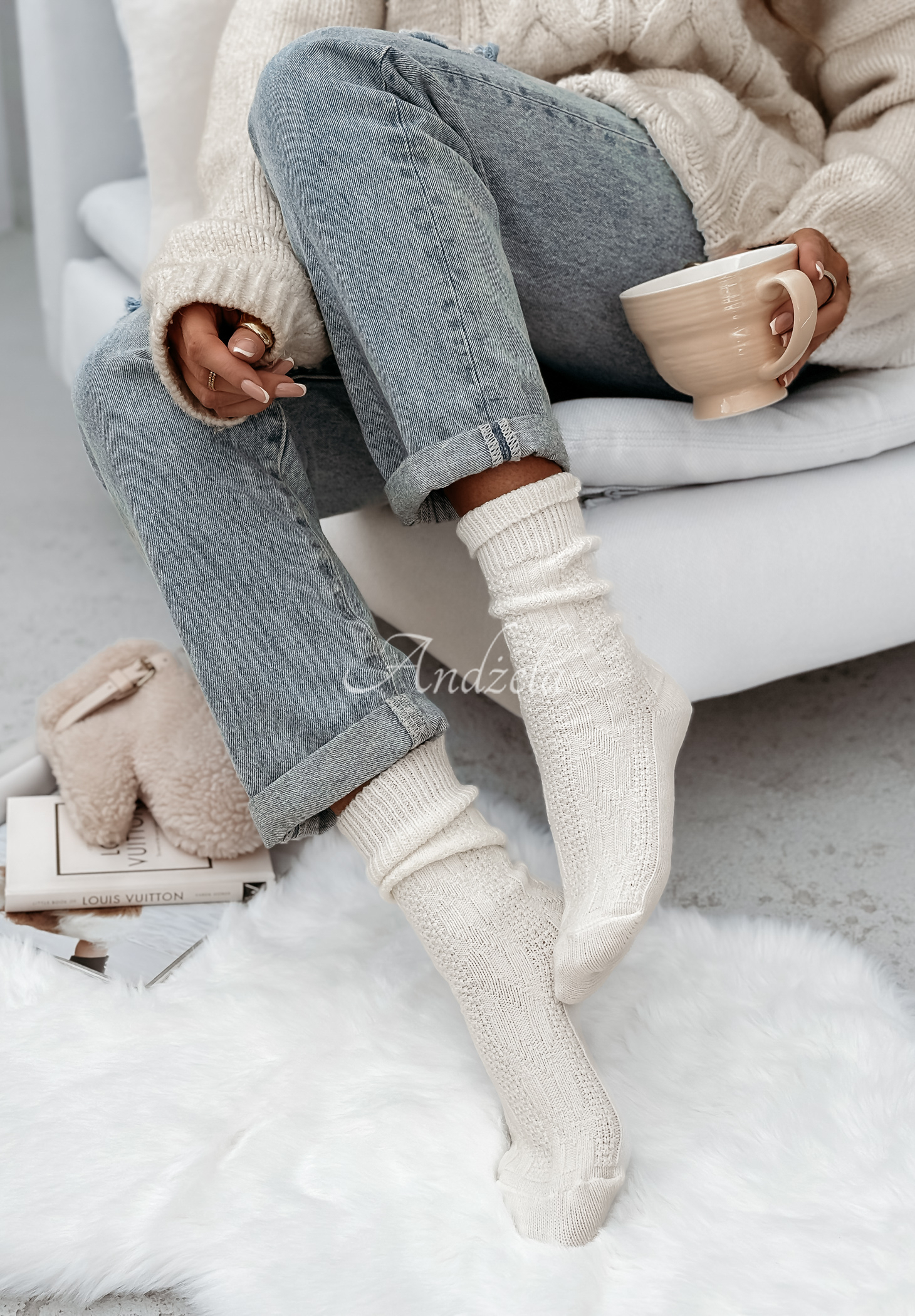 Wool socks in a minimalist design are an ideal choice for autumn-winter styling. The model with a longer cut, decoratively braided will add character to the styling. This proposal is made of pleasant, elastic material that will provide you with comfort while wearing.