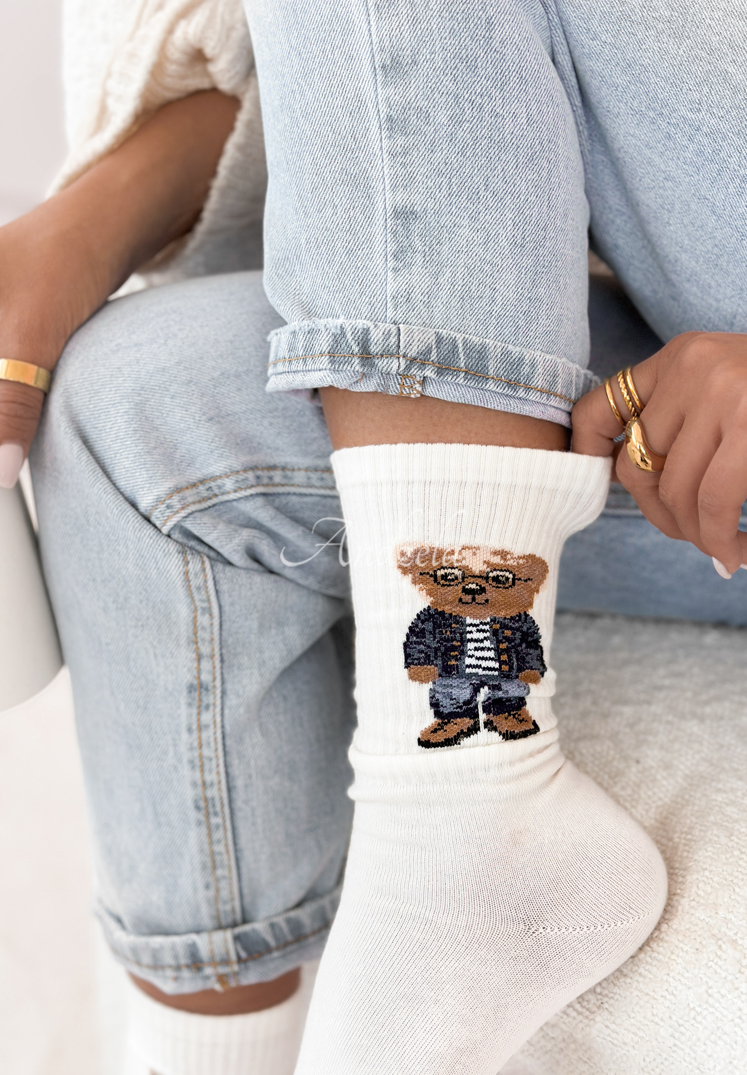Long cotton socks will perfectly complement styling in comfort. They are made of elastic, ribbed material, so they fit perfectly to the foot without compressing it. They are distinguished by a pattern, which gives the whole charm and perfectly fits in with current trends.