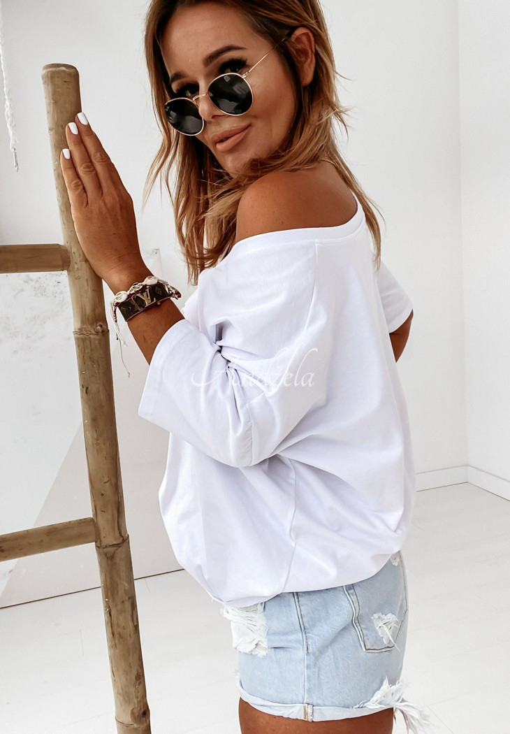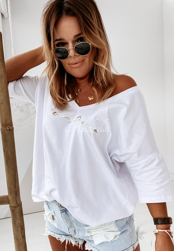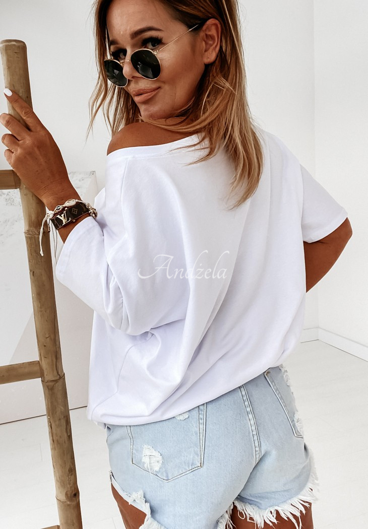 Classic oversize cut blouse with fashionable print. The cut features a feminine heart neckline. It is a great base for everyday styling, it will compose well with jeans or shorts. The product is available in several color options.