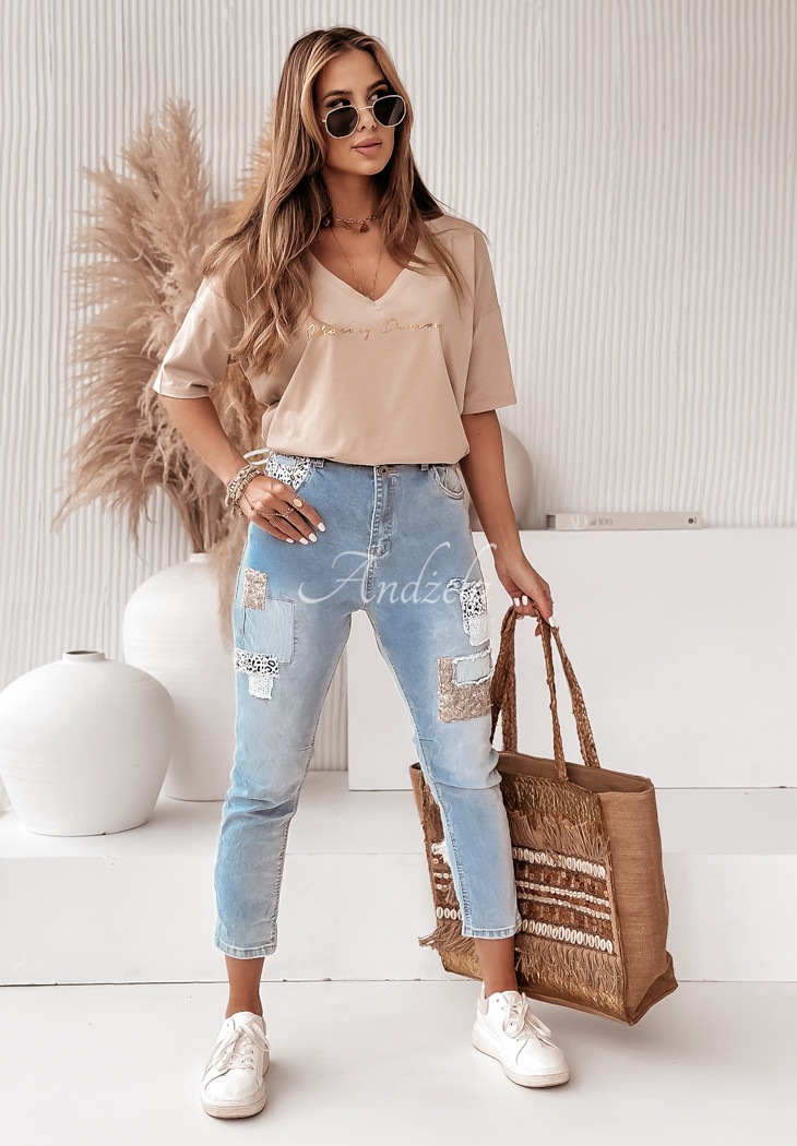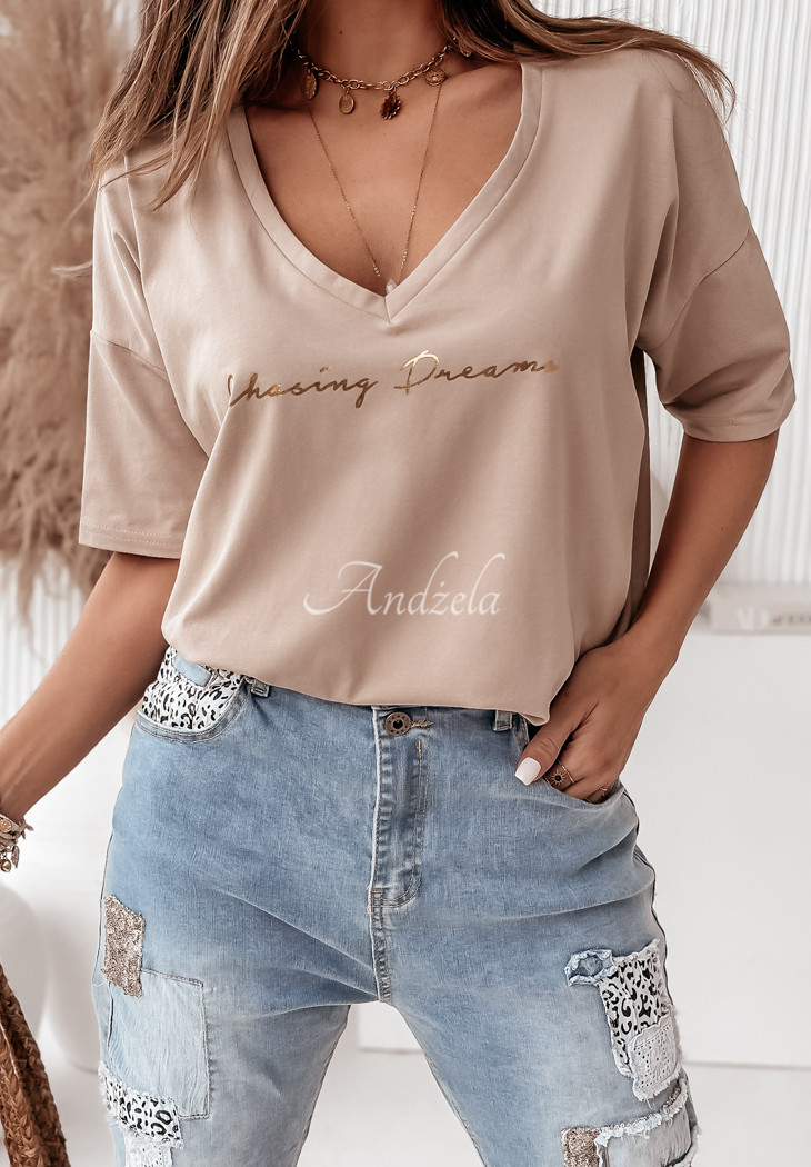 A classic oversized blouse with a fashionable print. The design features a feminine V-neckline. It's a great base for everyday outfits and goes well with jeans or shorts. The product is available in several colors.