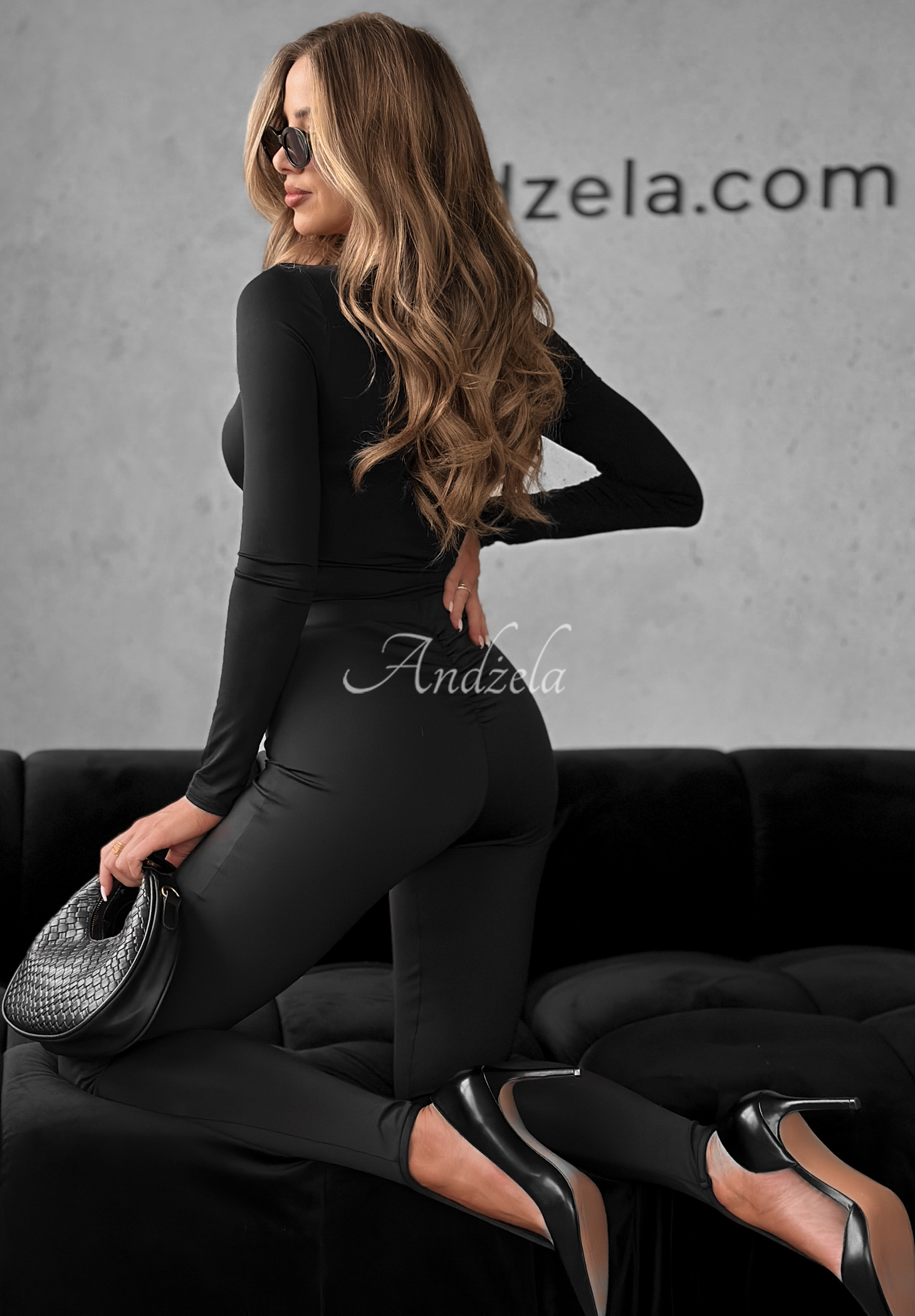 Body with deep, rounded neckline, made of stretch fabric. It is a proposal with padded cups, as well as adjustable hook-and-eye closure.