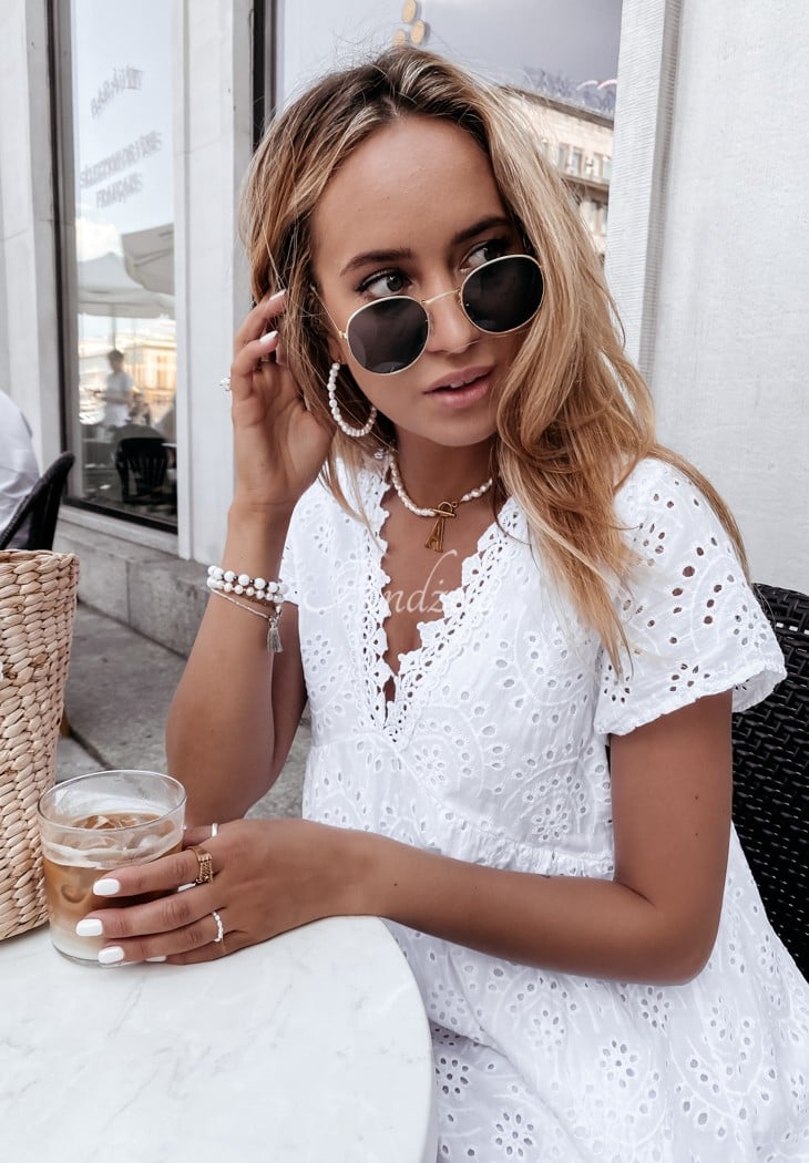 The boho style dress is a perfect proposition for many occasions. The cut looks very feminine thanks to the cut-off under the bust and the deep-cut neckline both at the front and the back. Openwork material makes the whole thing delicate and girly. It is a fantastic choice for creating everyday or even elegant styling. The model is made of high-quality material and is available in several color versions.