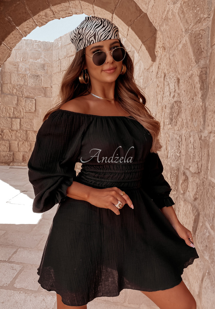 Skirt made of muslin fabric, perfect for hot days. A long-sleeved model, it has four elastic bands at the waist, which will phenomenally emphasize the silhouette. This proposal will present itself girly in everyday styling in the summer season. It will go great with sandals, creating a comfortable yet fashionable look. A high-quality product, it is available in several color options.