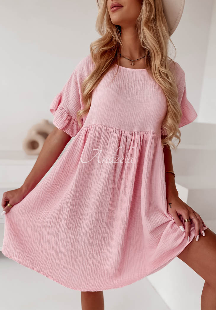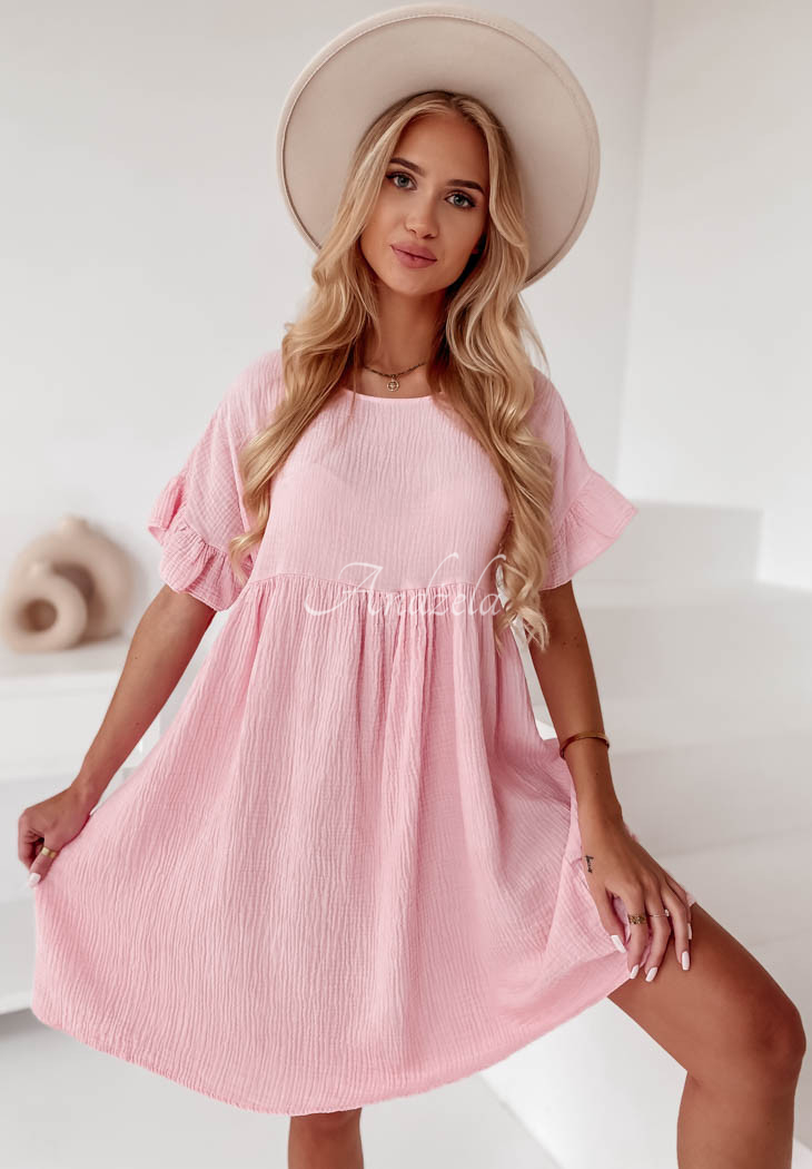 Muslin dress with ruffles Laguna light pink