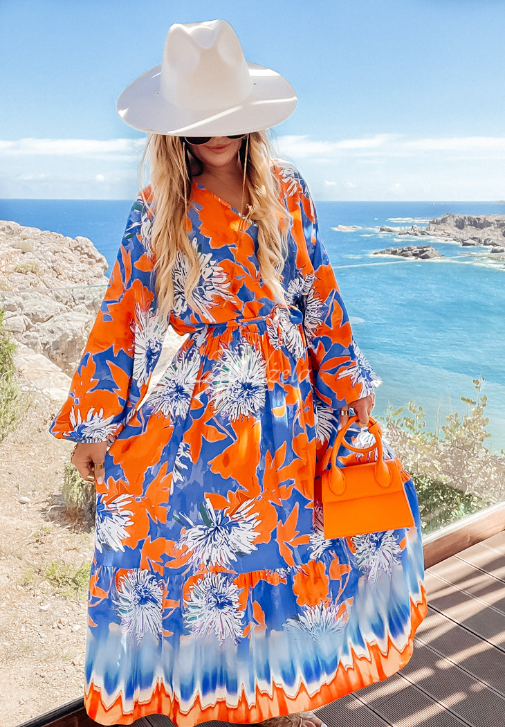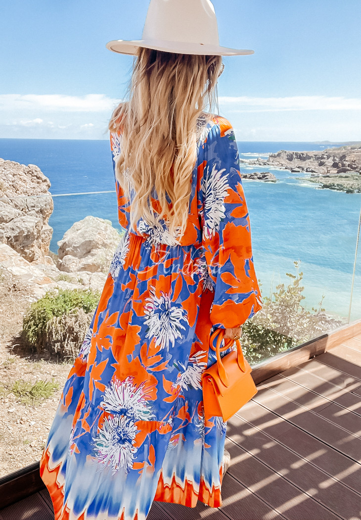 Fantasy Island blue and orange patterned maxi dress