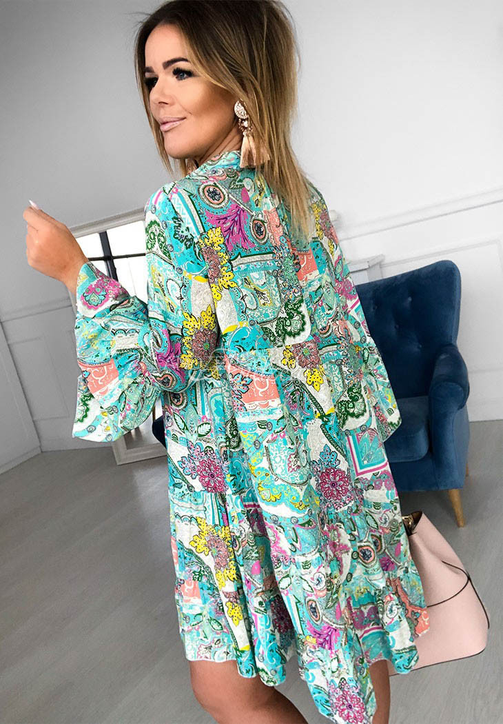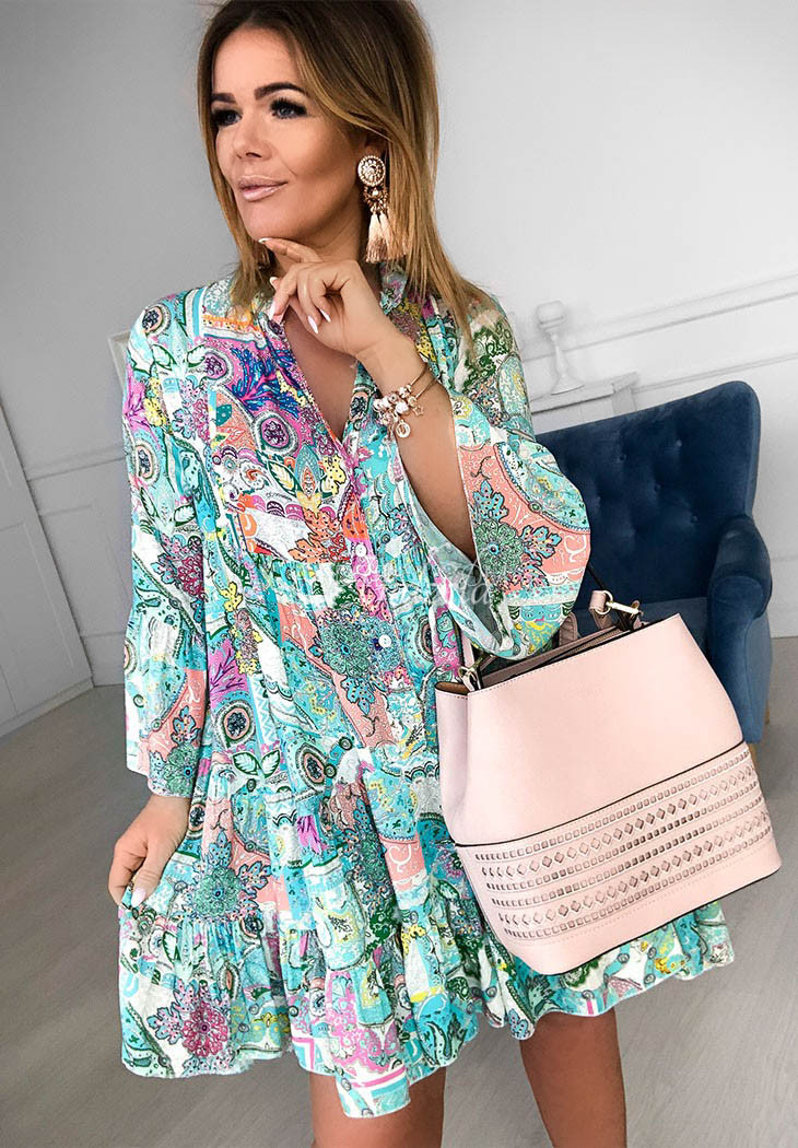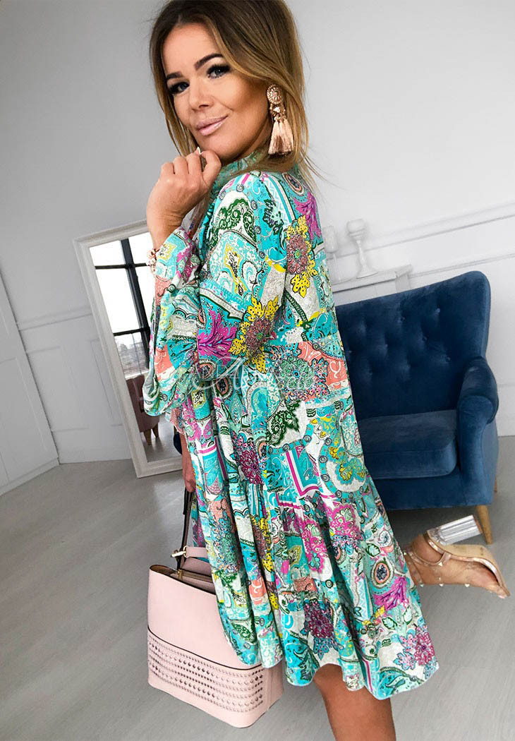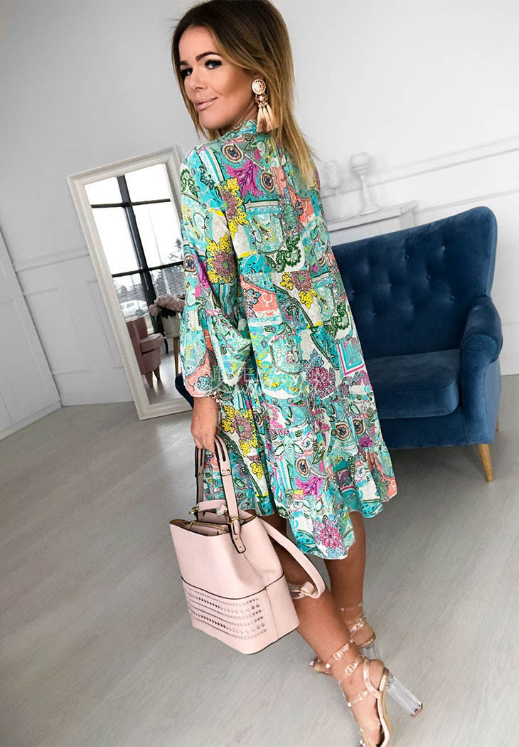 An oversize cut dress is perfect for everyday styling. The cut has long sleeves, which, like the hem, is finished with a frill. This model will present itself extremely girly in combination with heeled shoes. The product is made of high quality material.