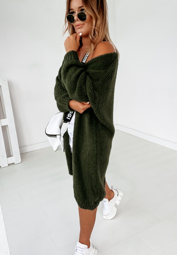 Bueno khaki long knitted cardigan