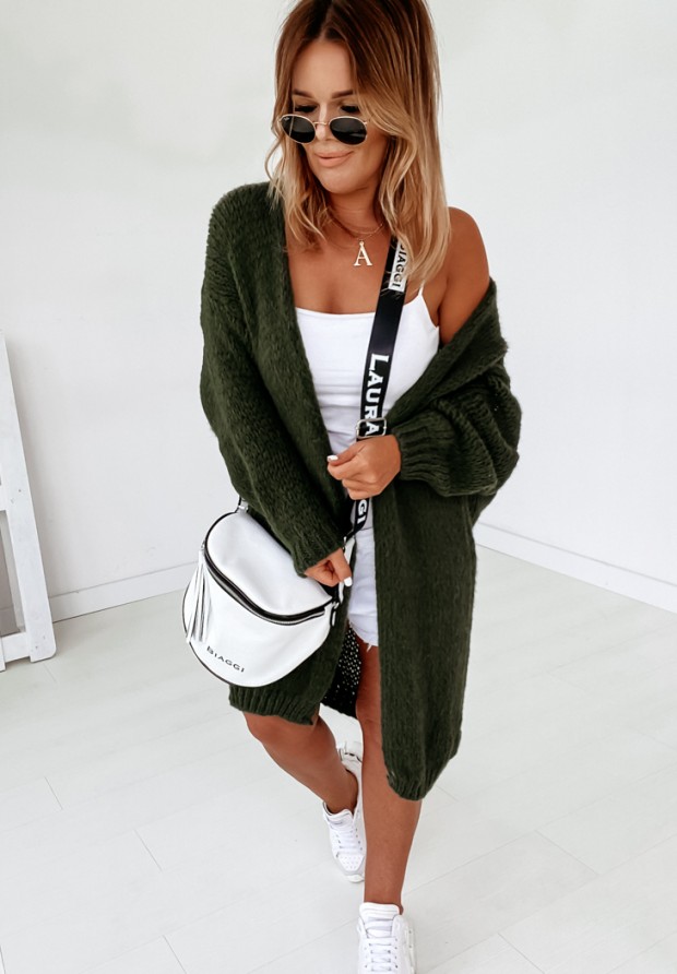 Original cardigan with a loose weave. The sweater will add charm to any styling. Ideal for skirts, as well as pants. Warm and pleasant to the touch. A perfect addition to any styling - available in several colors!