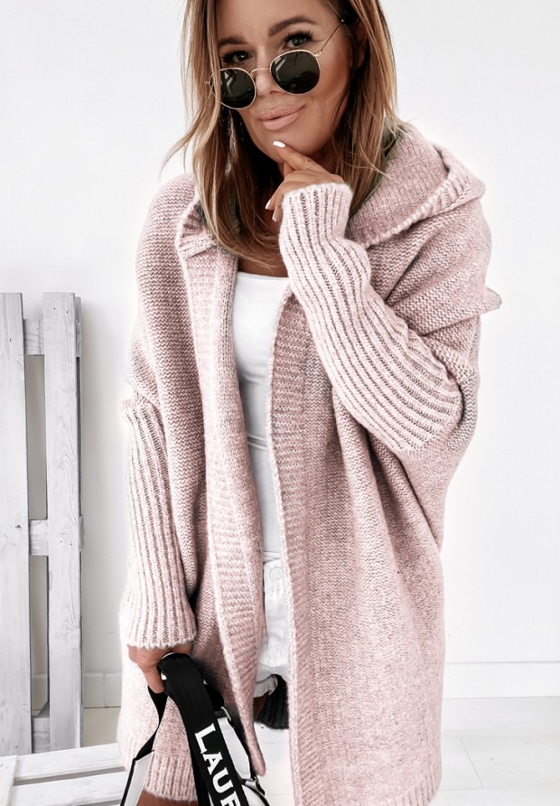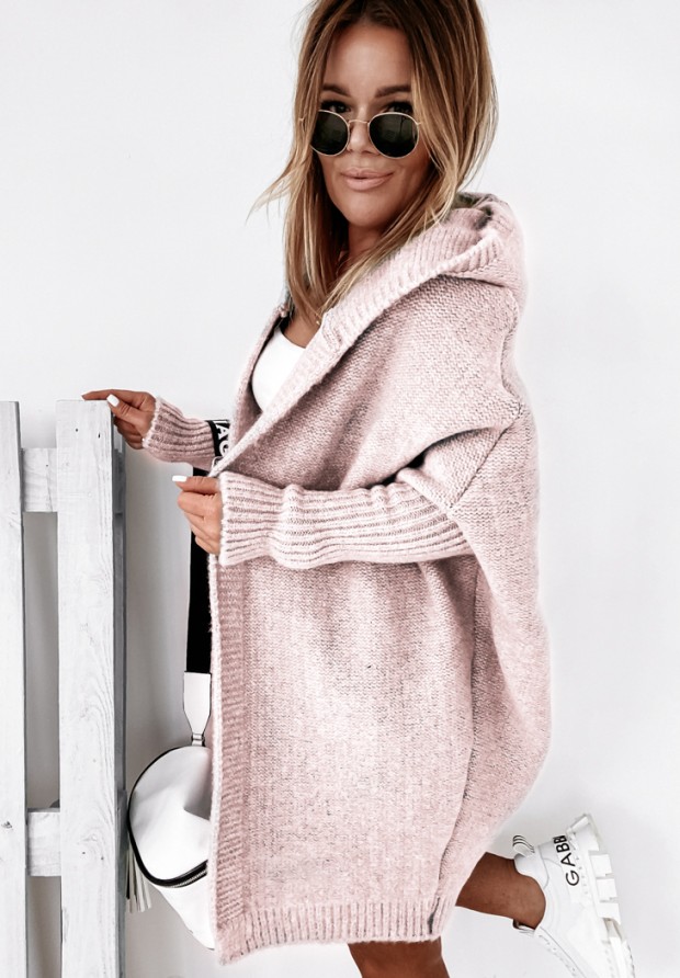 Long oversize cardigan with hood Montevista powder pink