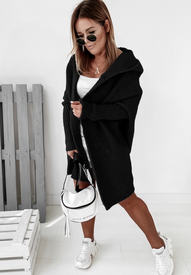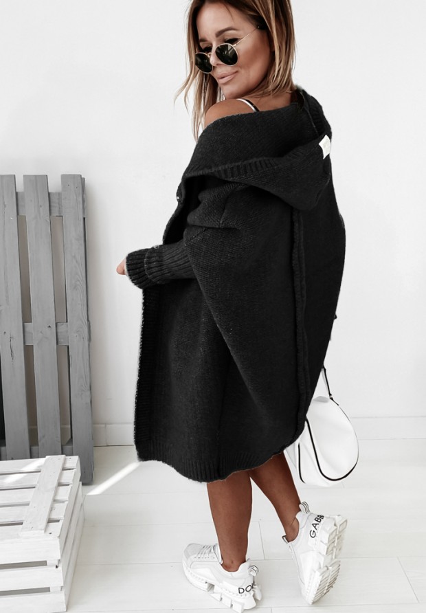 A supremely soft cardigan with a hood is a proposition that absolutely should be in every closet! Simple, but remarkable cut, it will always present itself phenomenally! It has welts in the sleeves. It is an ideal choice for styling on cold days. It will complement them fantastically and give a completely new character. The product is made of high-quality material, and is available in many color variants.