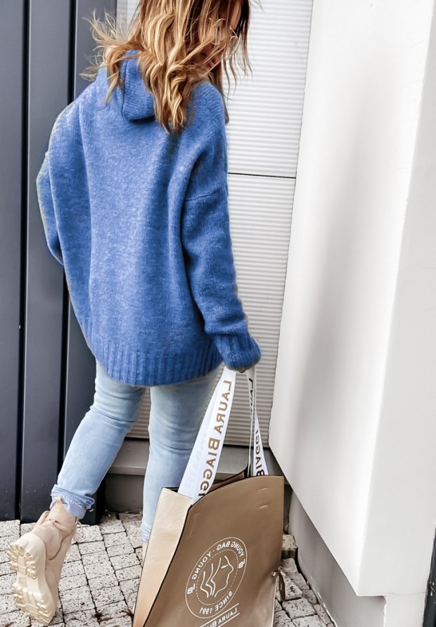 A loose sweater sewn from a soft, pleasant-to-touch knit fabric. The model has a drawstring hood, ribbed sleeves and a large pocket on the front. Available in several color variations. Designed by ANDŻELA!