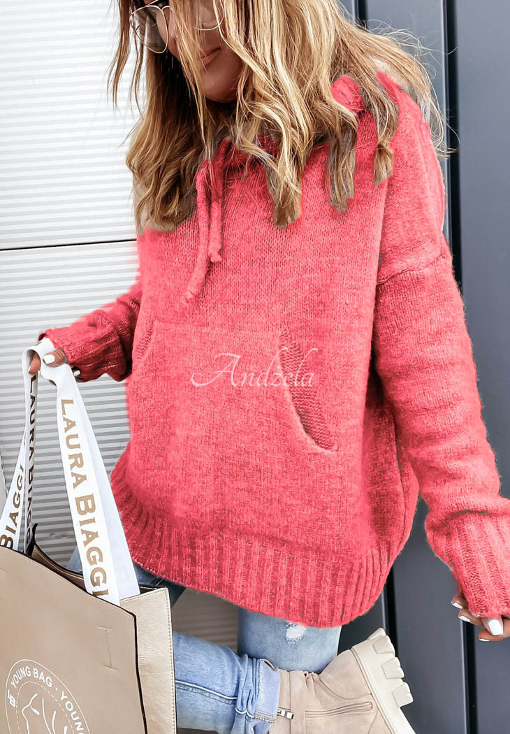 A loose sweater sewn from a soft, pleasant-to-touch knit fabric. The model has a drawstring hood, ribbed sleeves and a large pocket on the front. Available in several color variations. Designed by ANDŻELA!