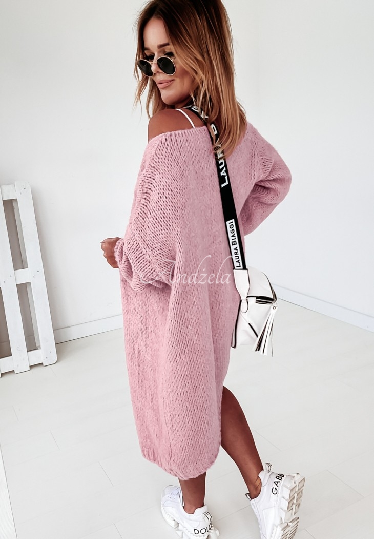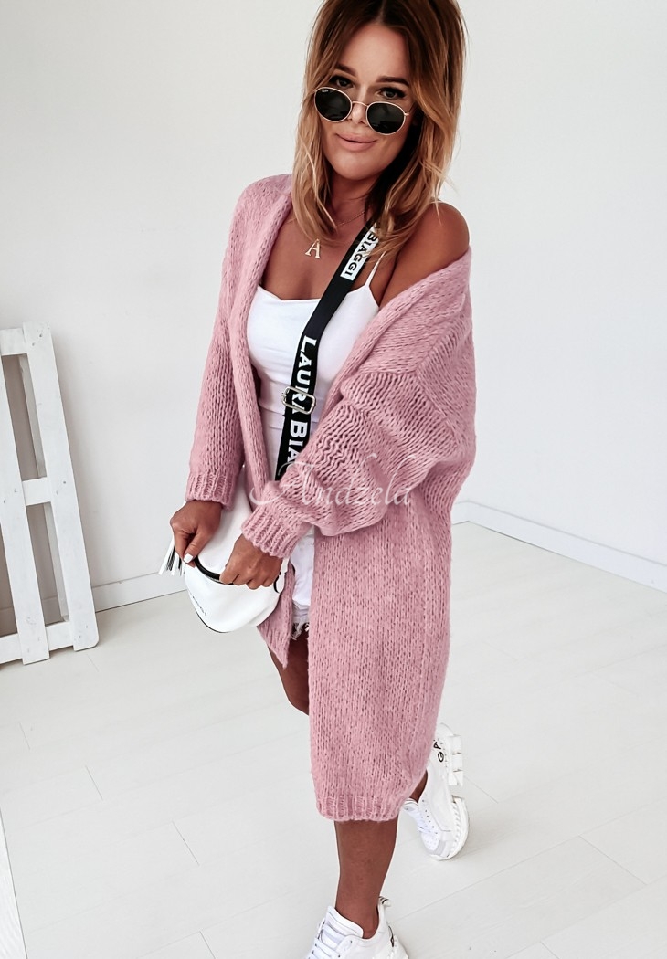 Bueno long knitted cardigan in dark powder pink