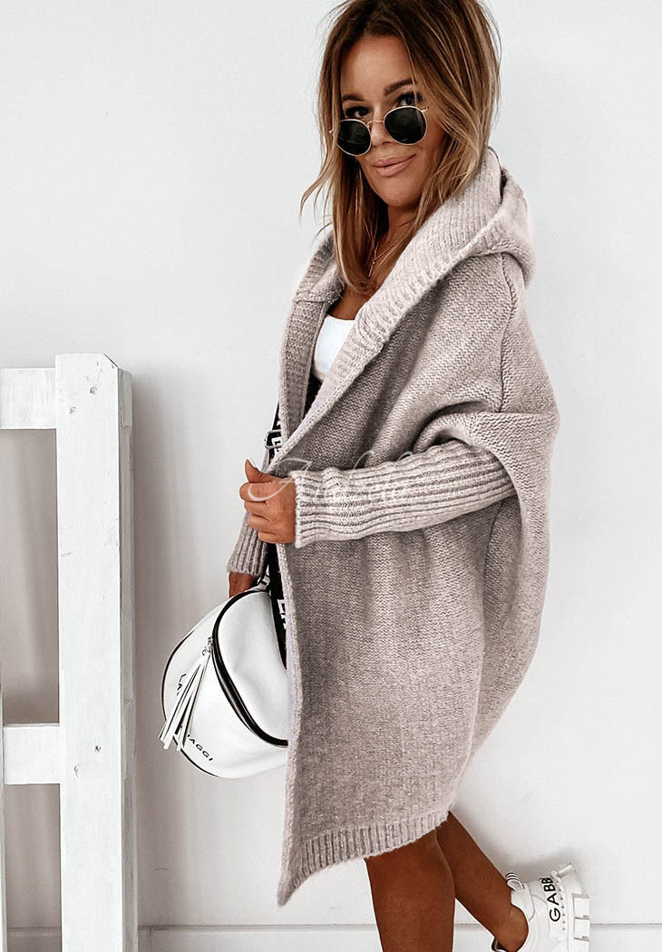 A supremely soft cardigan with a hood is a proposition that absolutely should be in every closet! Simple, but remarkable cut, it will always present itself phenomenally! It has welts in the sleeves. It is an ideal choice for styling on cold days. It will complement them fantastically and give a completely new character. The product is made of high-quality material, and is available in many color variants.