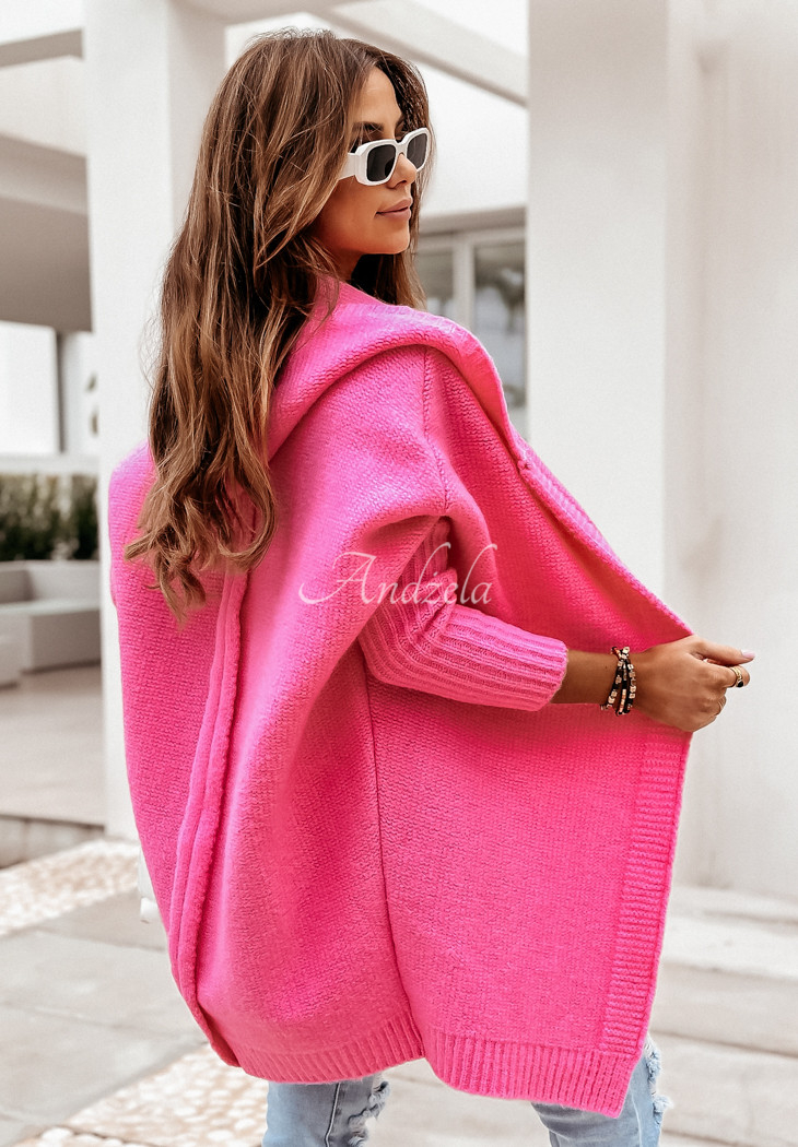 Long oversize cardigan with hood Montevista pink