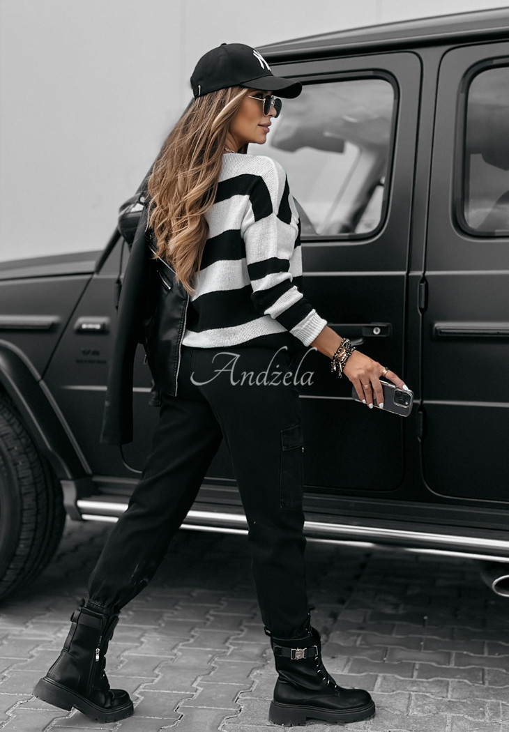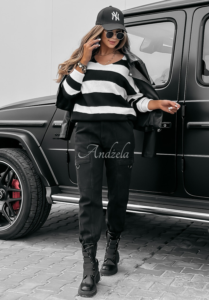 An oversized striped sweater is the perfect complement to many everyday outfits. The model with a v-neck has delicate ribbing at the ends of the sleeves, as well as at the bottom. Available in two color versions. Designed by ANDŻELA!