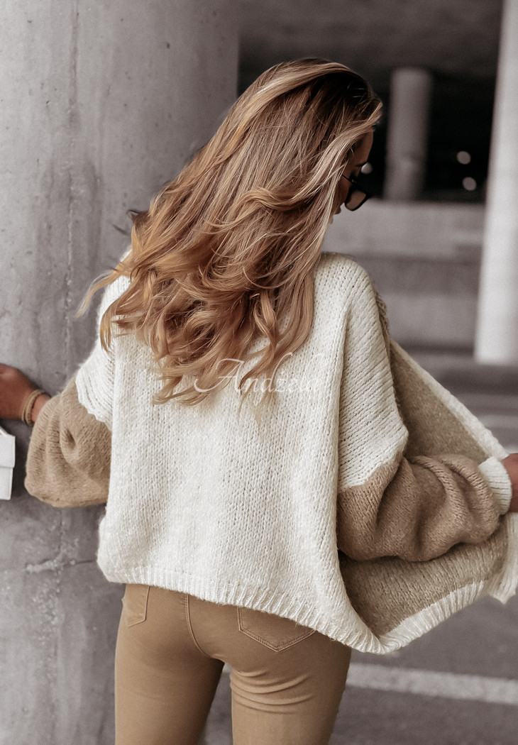 A short, gold-buttoned cardigan is a perfect choice for many everyday outfits. The model with buff sleeves, which, like the lower part, have a ribbed hem. An additional advantage is the heart neckline, which will emphasize the upper part of the body. Available in several color versions.
