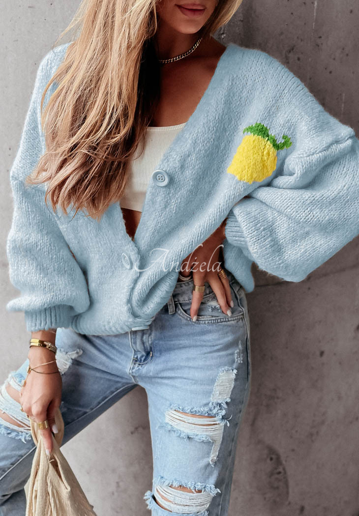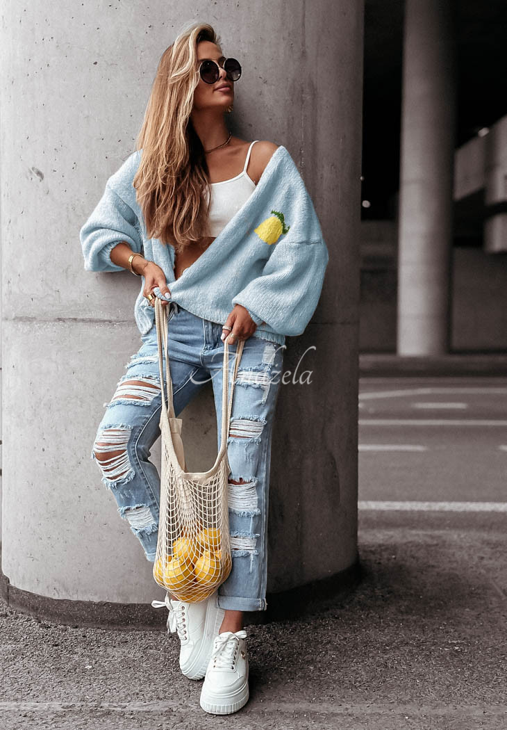 A soft wool-blend cardigan is a great choice for colder days. It is distinguished by decorative embroidered patterns located both on the front and back. It is an oversized cut model with a button closure. It has long sleeves, which, like the hem, are finished with ribbed trims.