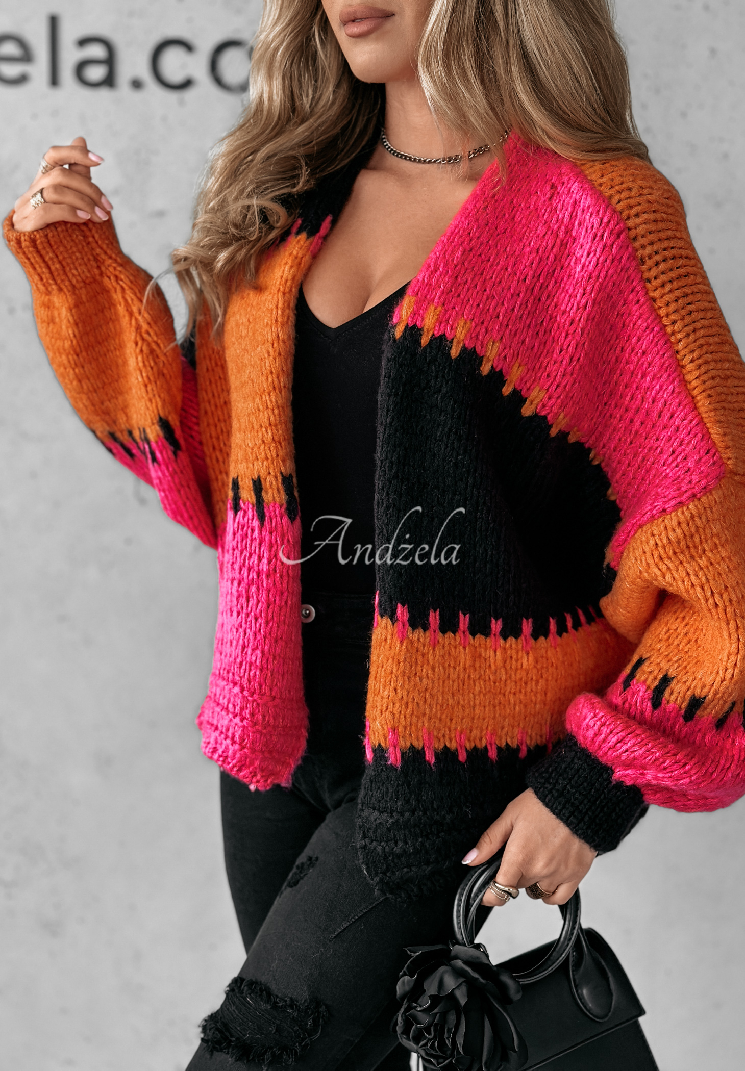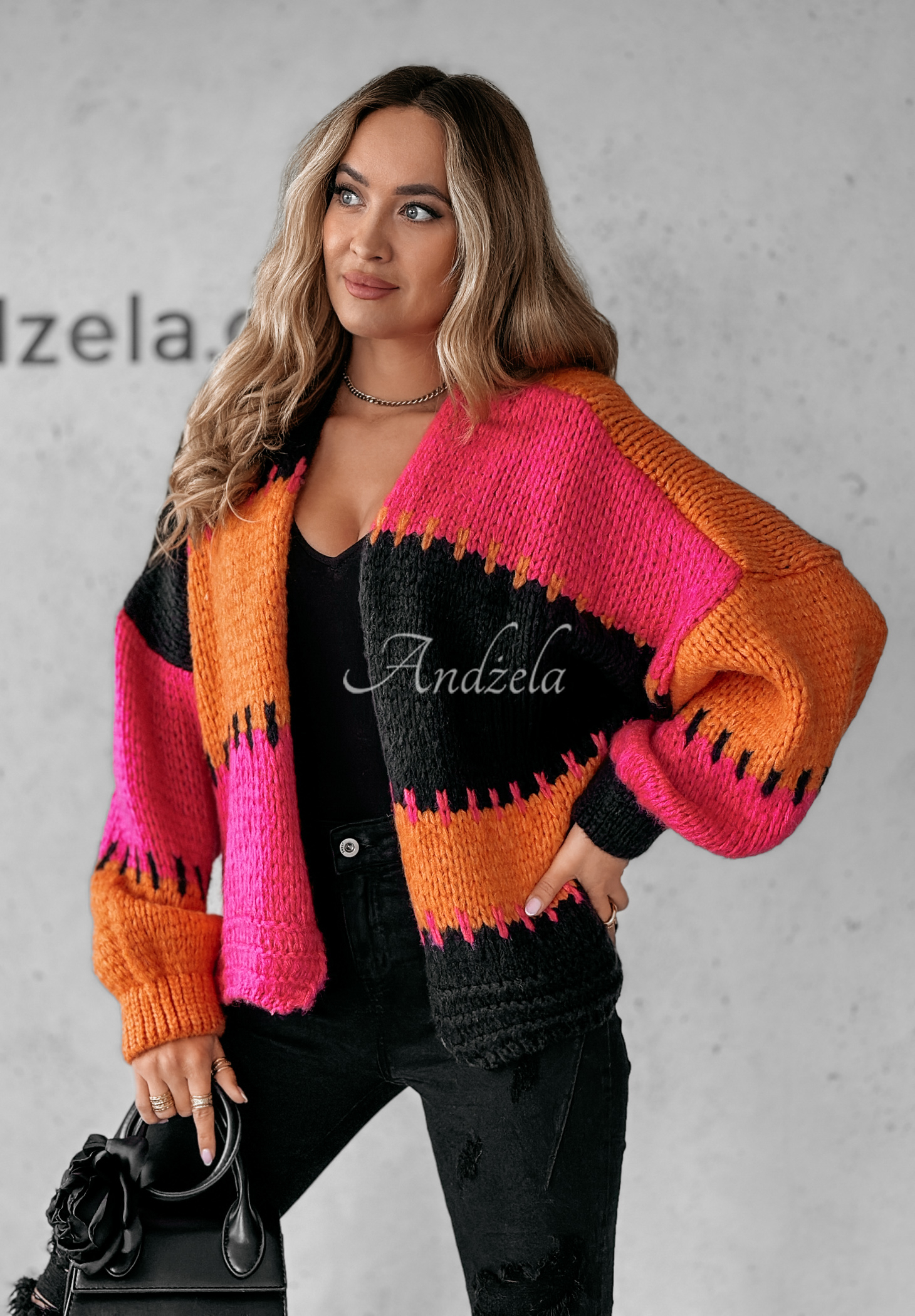 The wool-blend cardigan is an option that will be phenomenal for cooler weather lookups. It is distinguished by a great color combination, as well as wide sleeves, which are finished with ribbed cuffs. It is an oversized sweater with a short cut without a button-up.
