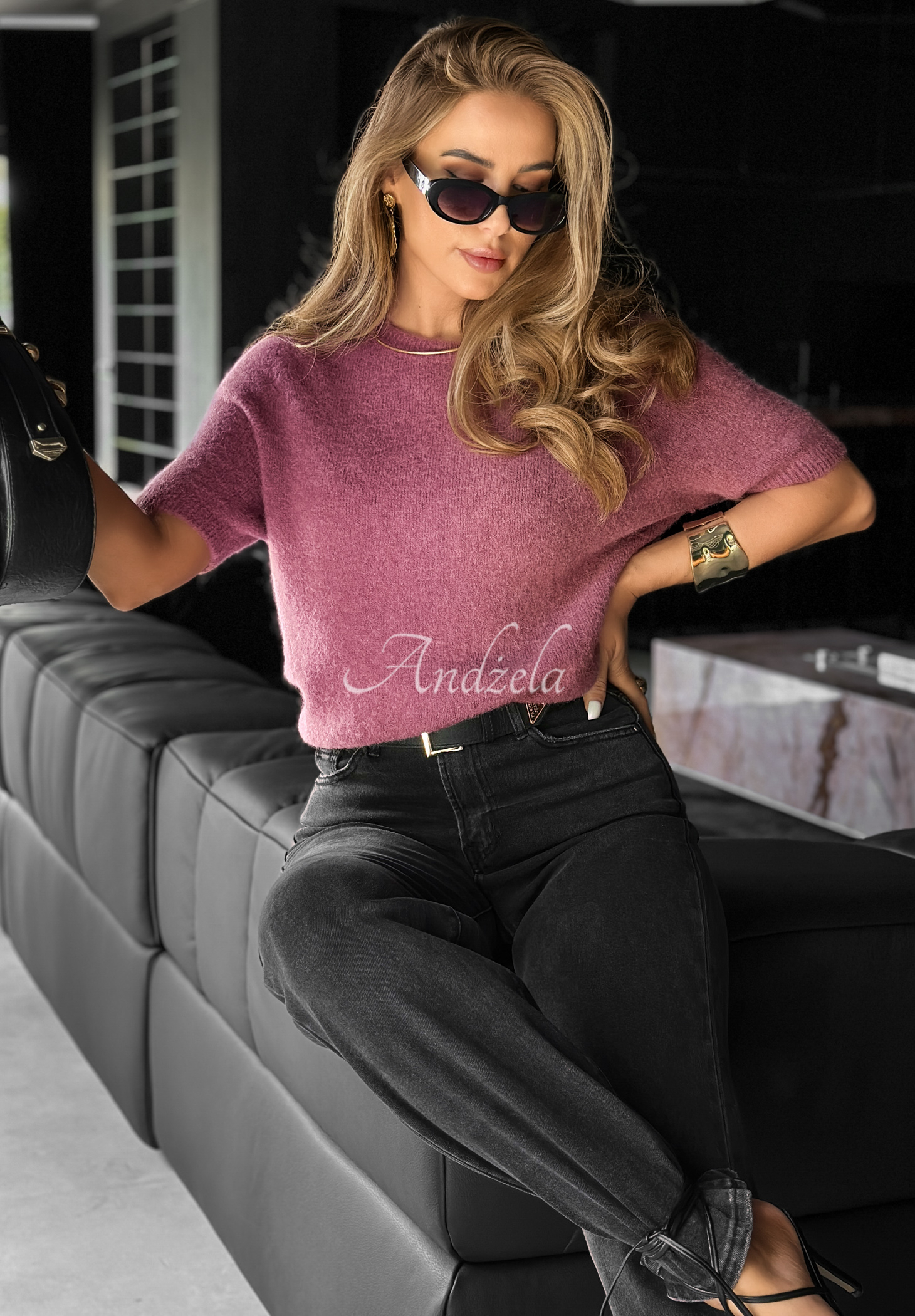 A soft sweater with an admixture of alpaca and wool is a proposal that will perfectly complement any closet. It is a model of a slightly shorter cut with short sleeves, which, like the bottom, are finished with welts. The whole will look great in everyday styling in a comfortable setting.
